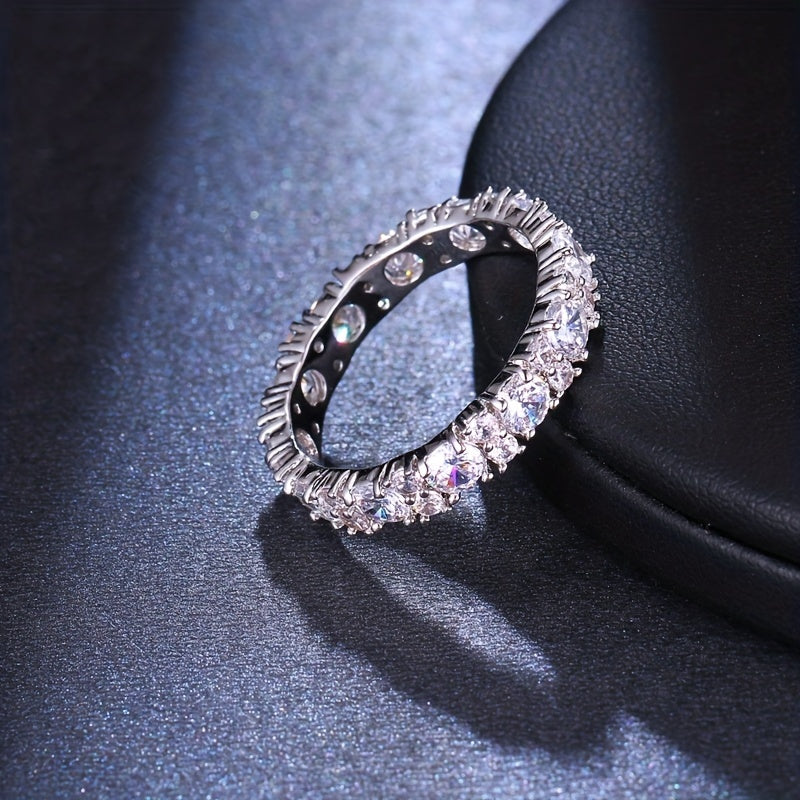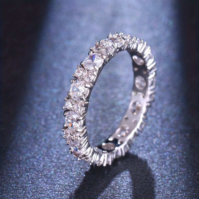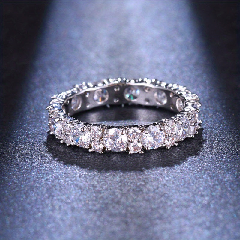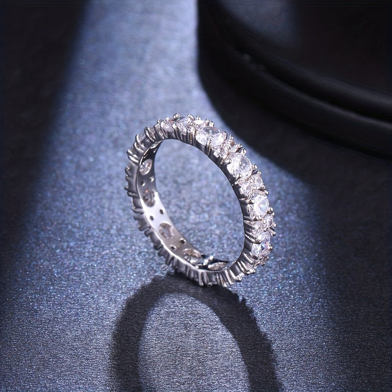 Elegant and timeless cubic zircon ring set made for daily wear or special occasions. The silver-plated bands are adorned with sparkling crystals that add a touch of luxury to any outfit.