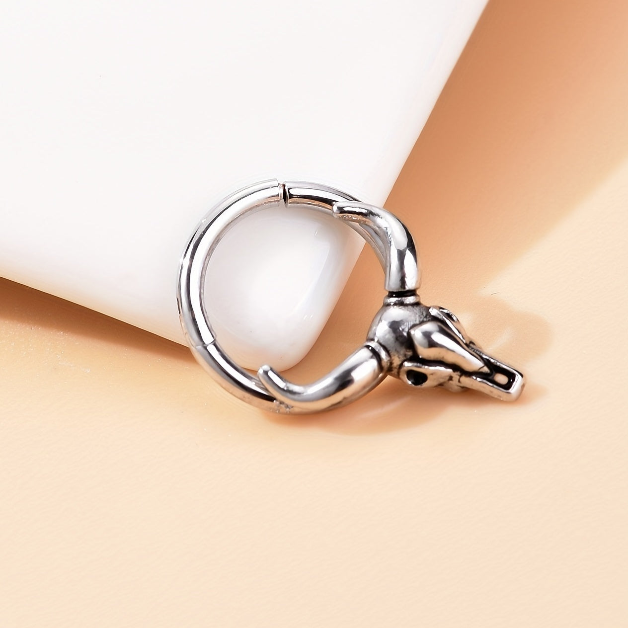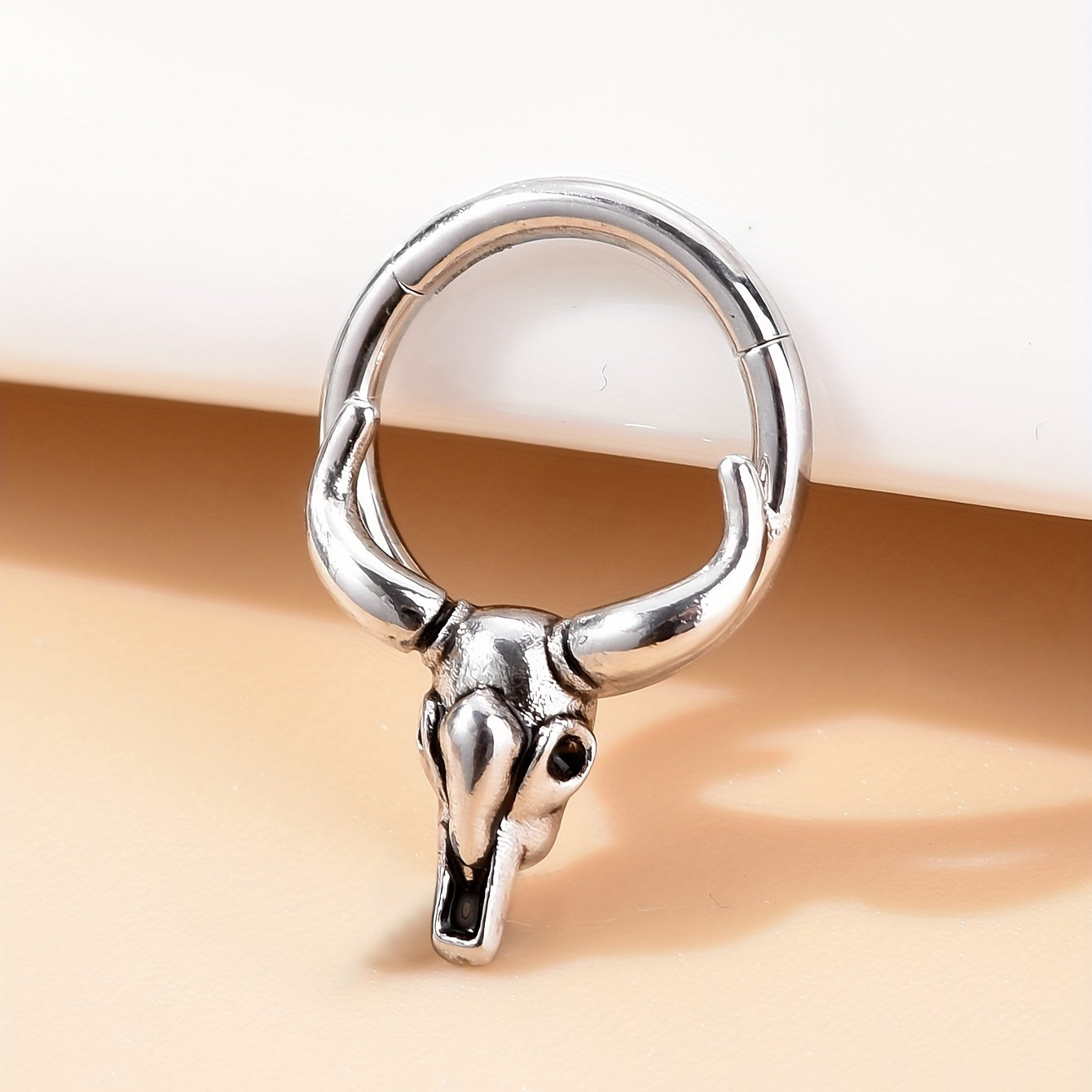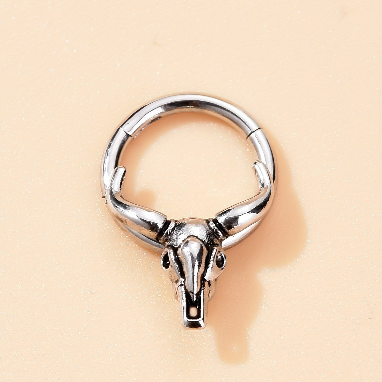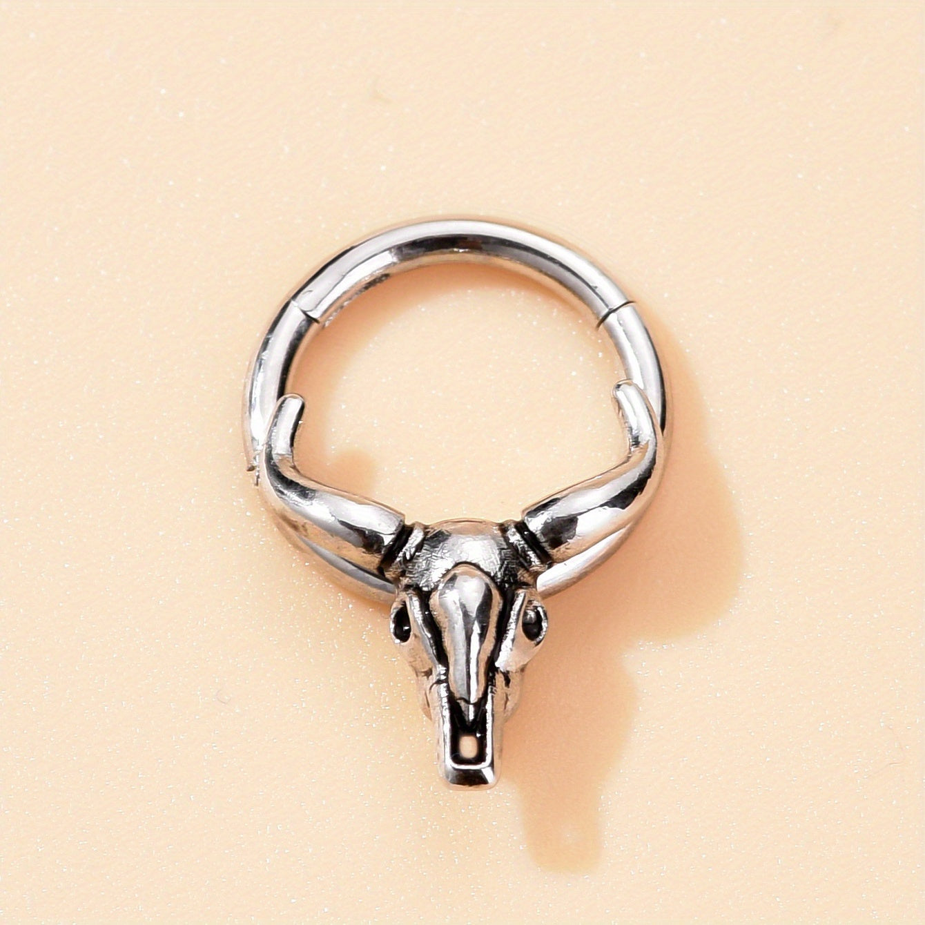 Embrace cowboy style with this cow head hinged septum nose ring made of stainless steel. Perfect for lip, eyebrow, or body piercing jewelry.