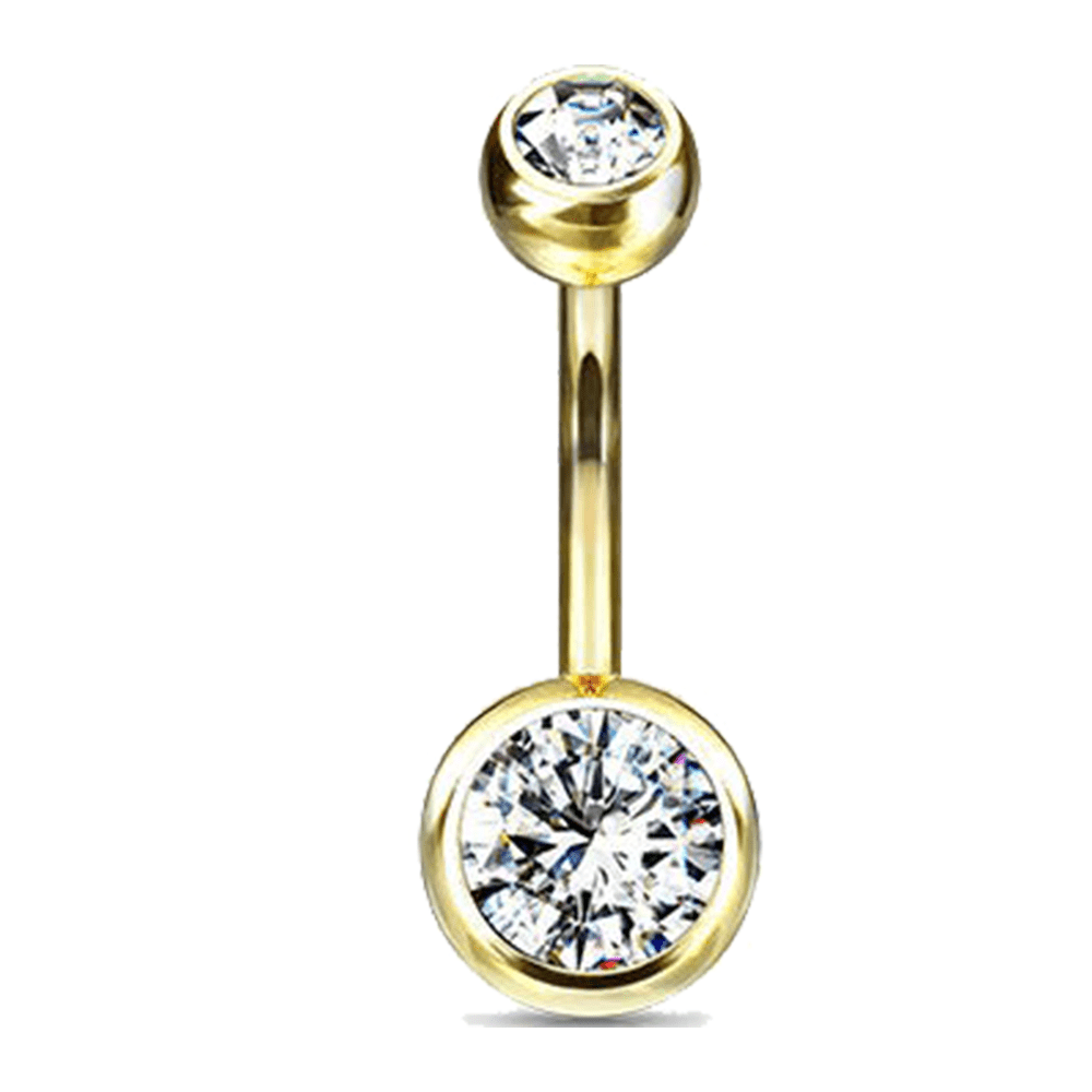 This double gem ball belly button ring features a birthstone crystal ball design, perfect for adding a touch of sparkle to your navel piercing. Made from high-quality materials, this navel barbell is a stylish and durable choice for body jewelry enthusiasts.