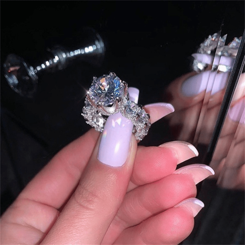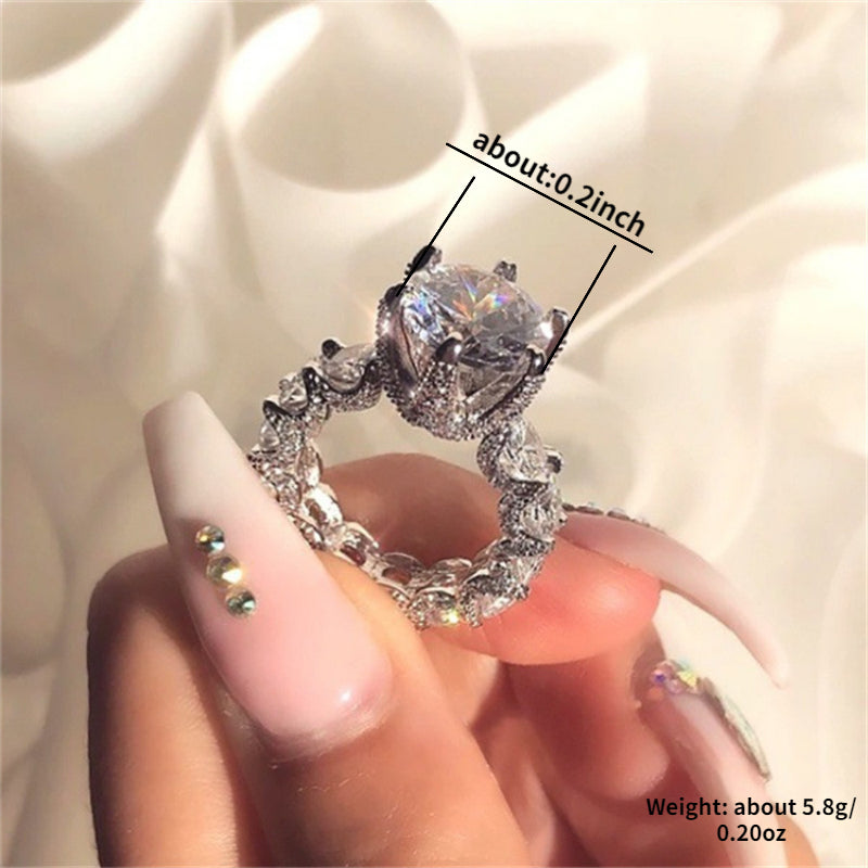 This stunning silver plated promise ring features a sparkling band inlaid with zircon stones, making it the perfect symbol of elegance for engagement or wedding. Ideal for female evening parties.