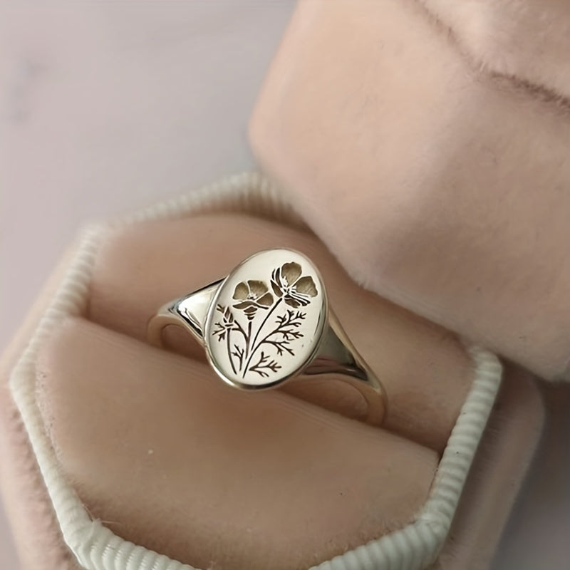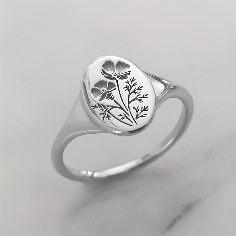 This unique ring features a creative flower design with intricate carving. It is perfect for adding a touch of elegance to your outfit.