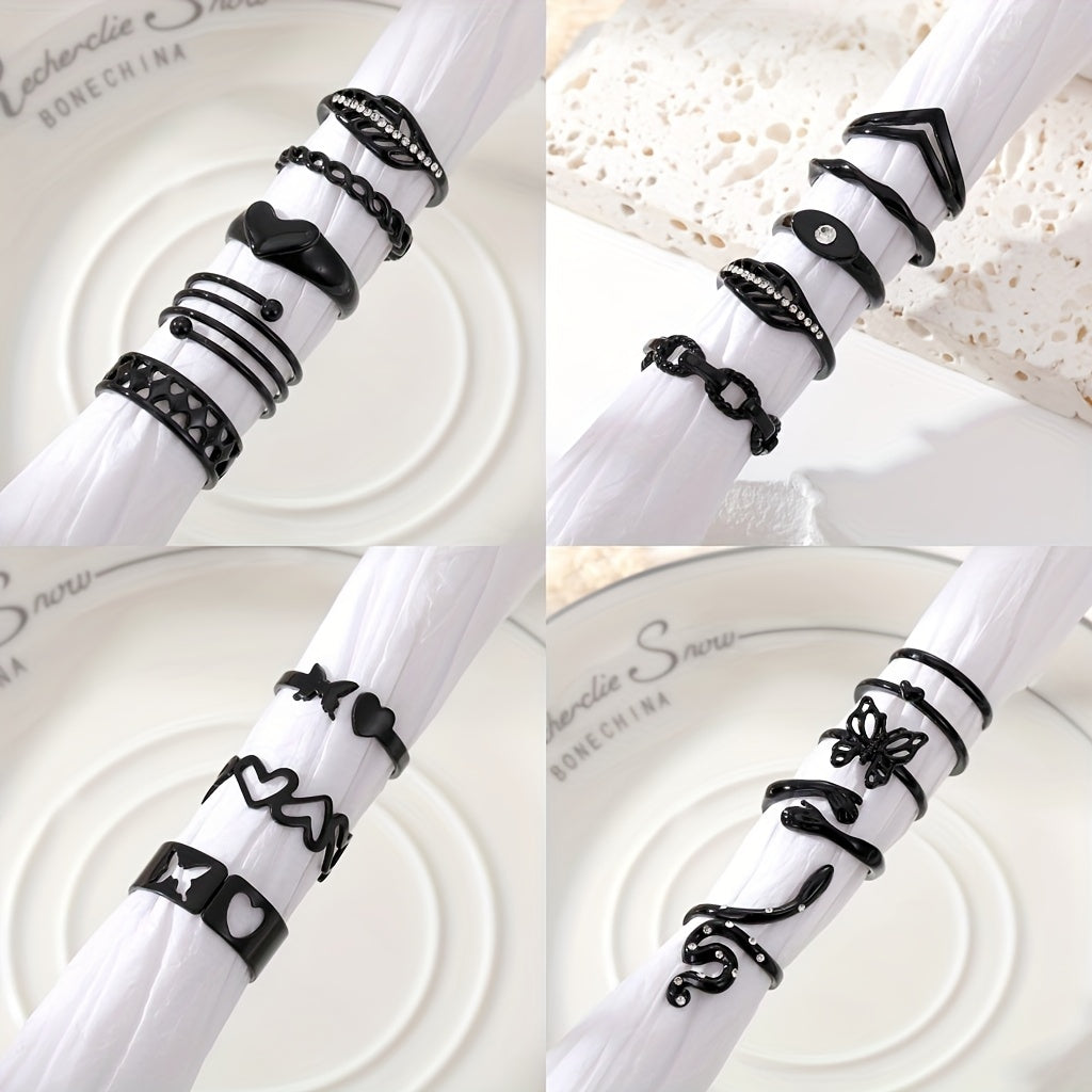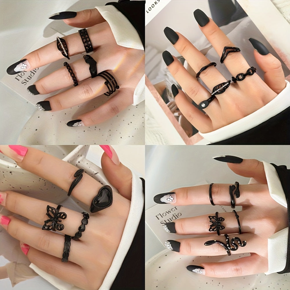 Add a touch of mystery and personality to your outfit with this Gothic Dark Snake Embrace Ring Set. Perfect for parties or daily wear, these rings feature intricate triangle patterns that set them apart from the rest.