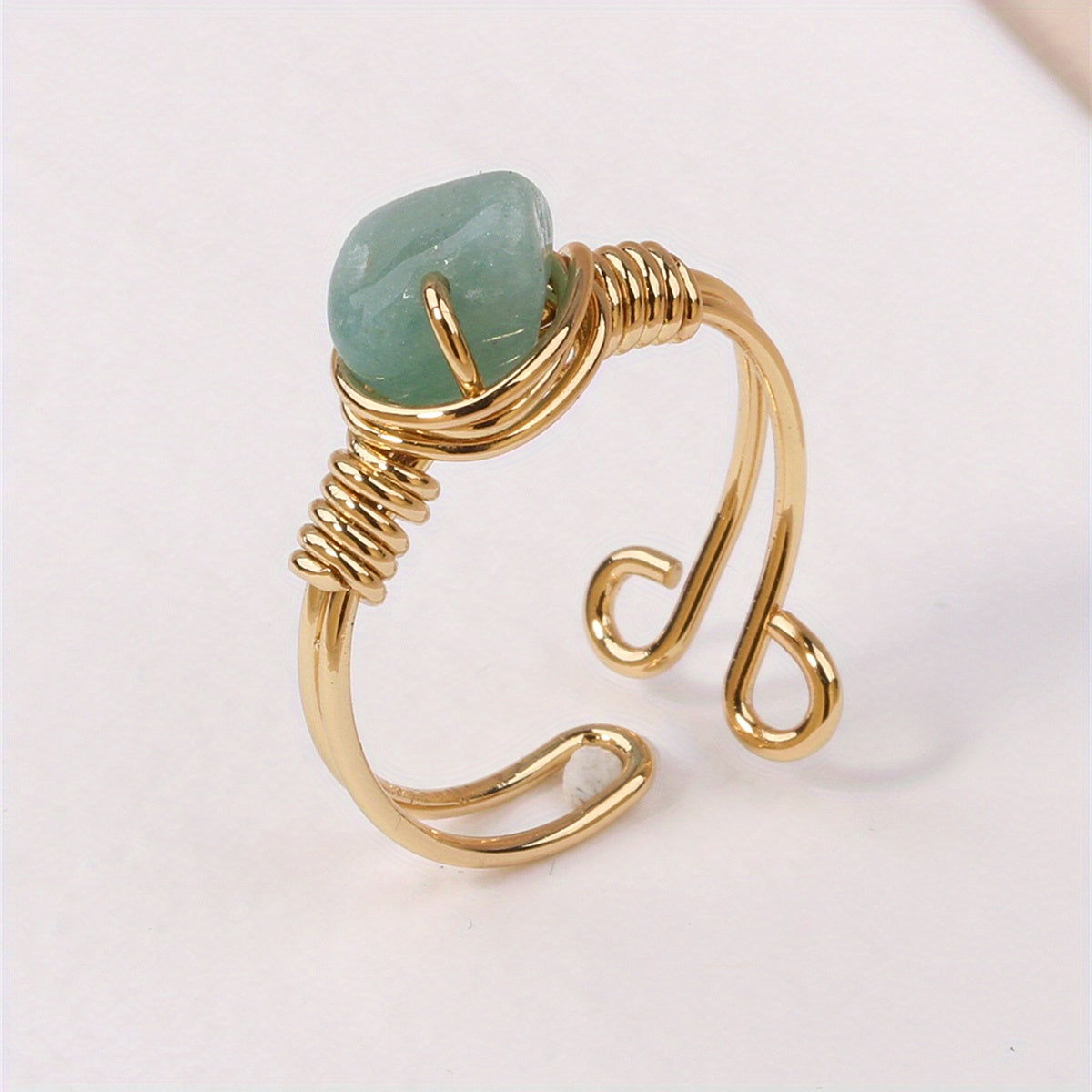 Healing Crystal Open Ring Irregular Wire Wrapped Adjustable Finger Ring