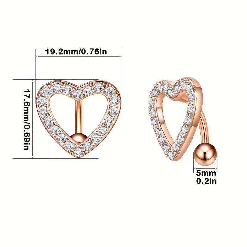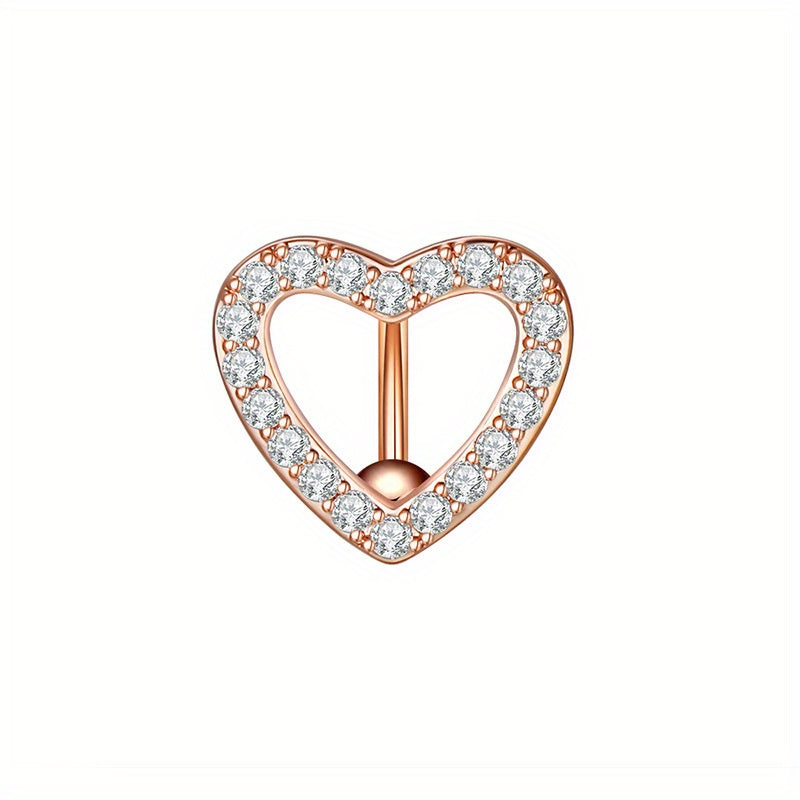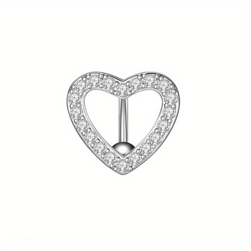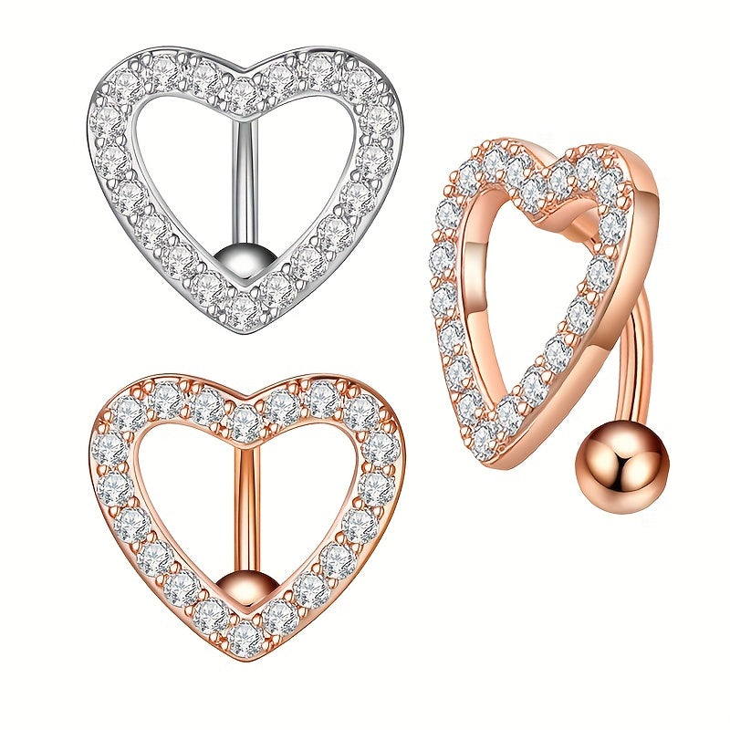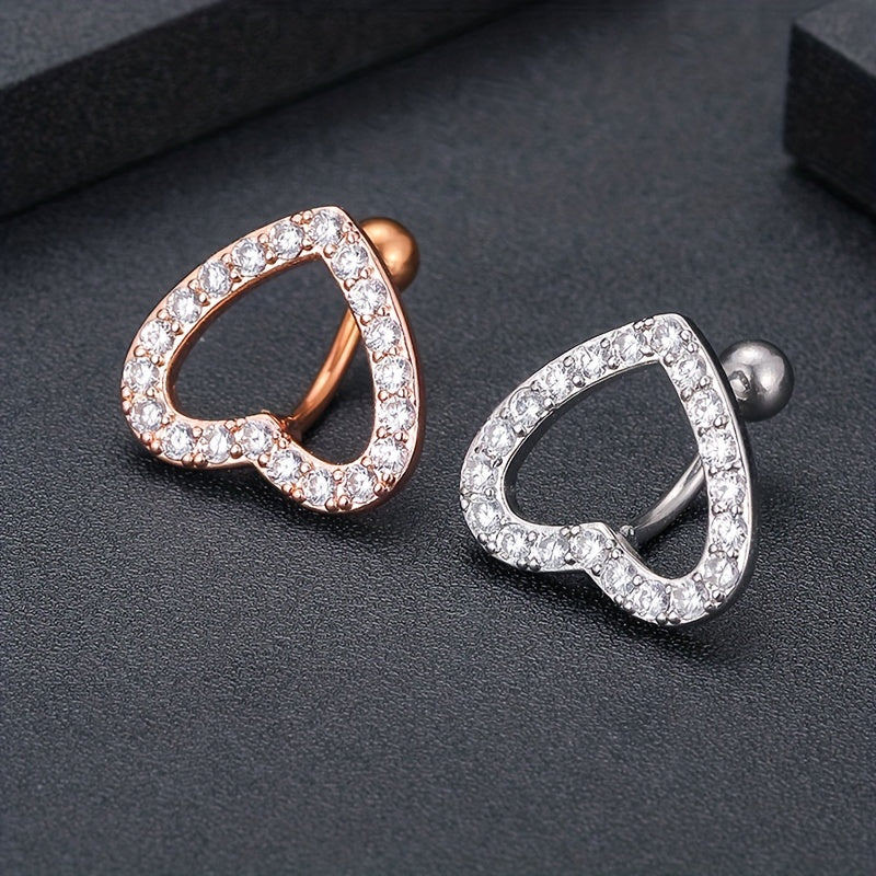 Enhance your belly button with this stylish curved barbell ring featuring a hollow heart design and inlaid rhinestones. Perfect for adding a touch of glam to your body jewelry collection.