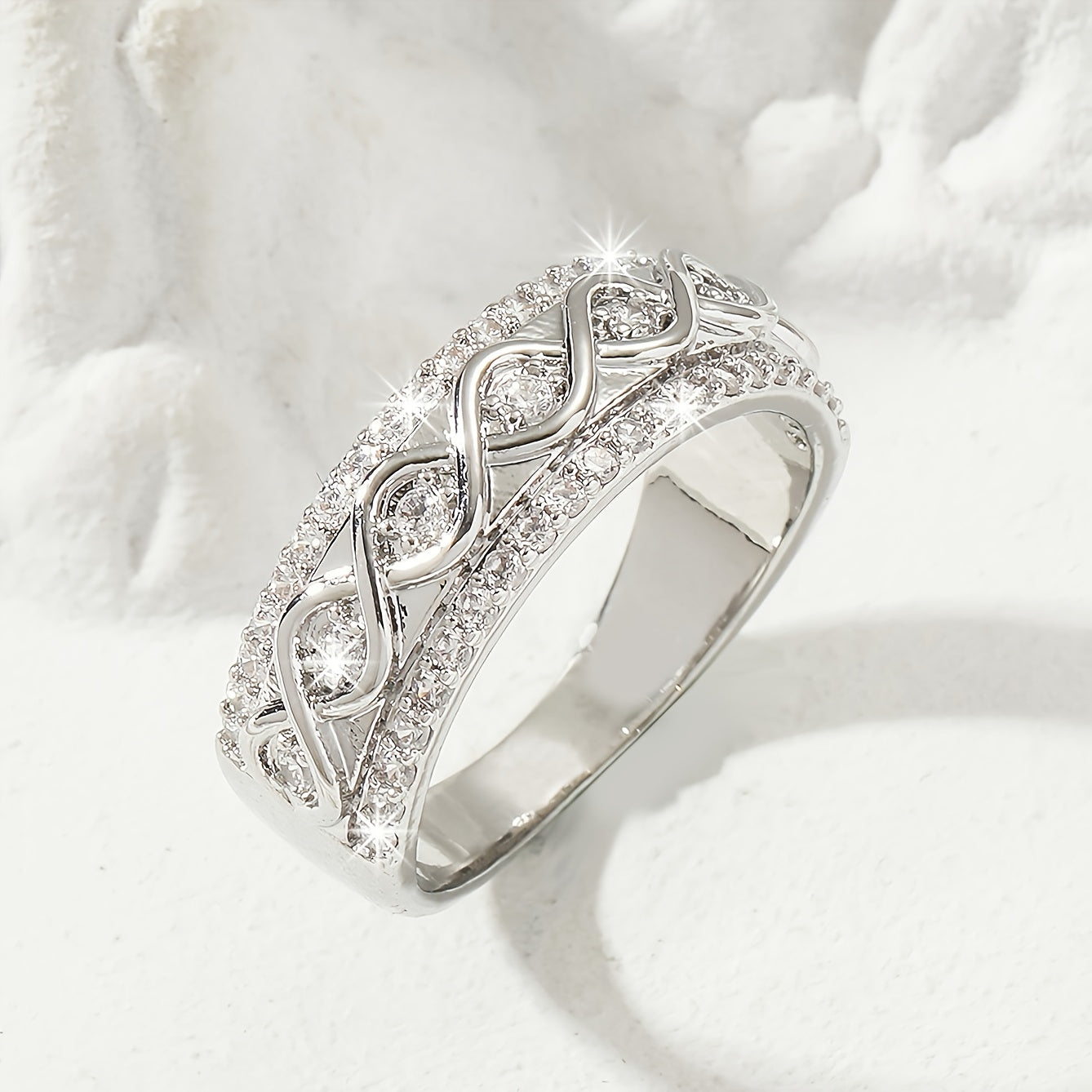 Exquisite infinite symbol eternity ring with inlaid zircon, perfect for weddings, engagements, and gifts for women, lovers, and girls.