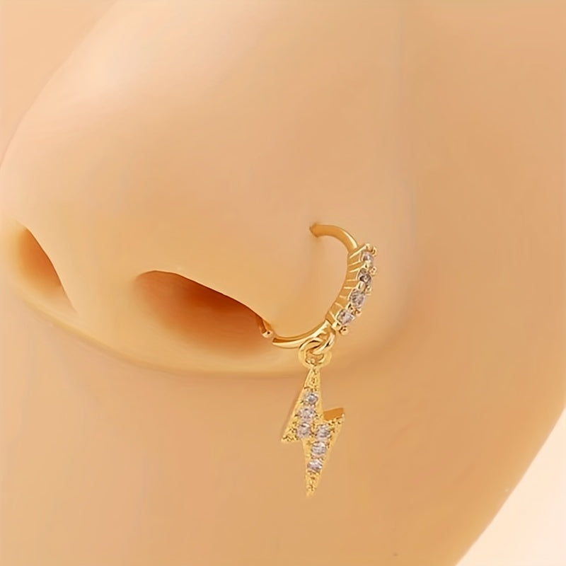 Add a touch of unique style to your look with this creative nose ring featuring a love butterfly design. The pendant includes star, moon, and lightning elements for a trendy and fashionable vibe.