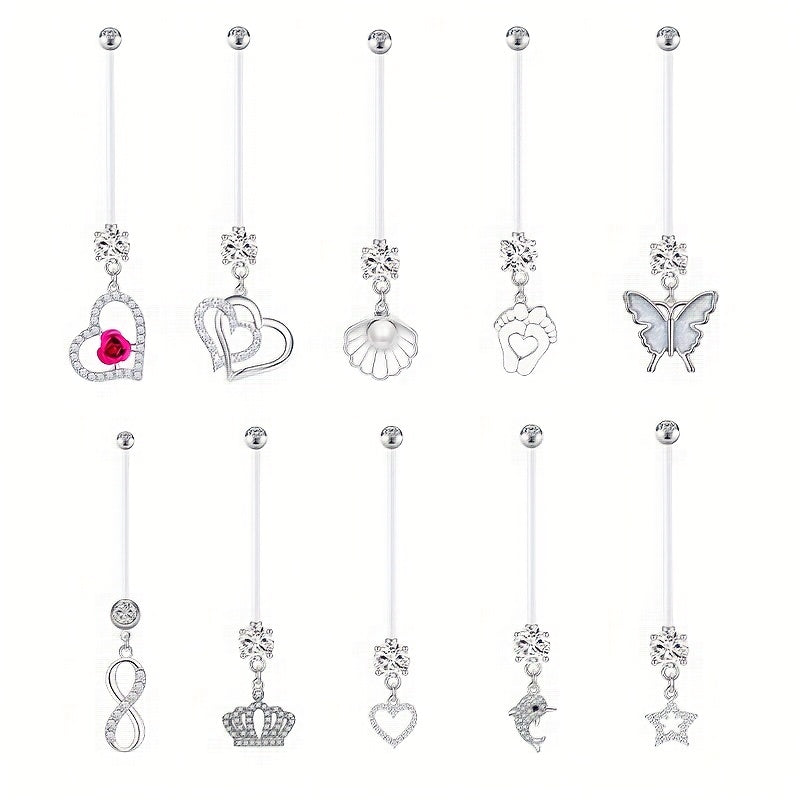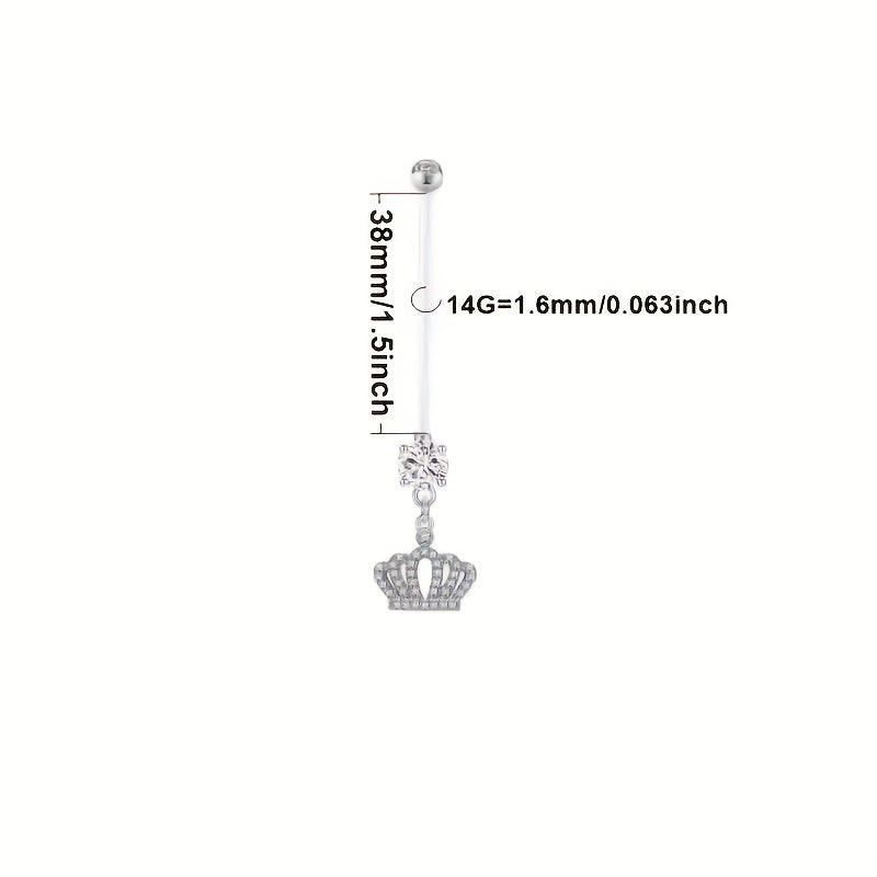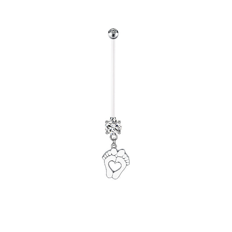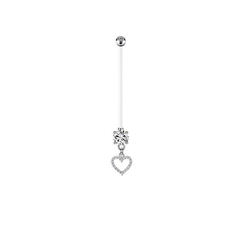 Long bar 38mm sport belly button ring that is perfect for pregnant women. Made of flexible bioplast material to accommodate maternity needs. Clear retainer for discreet wear.