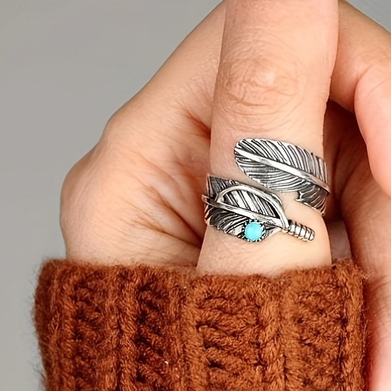 This stylish ring features a unique geometric feather shape design, made of high-quality alloy. It is adjustable to fit various finger sizes.