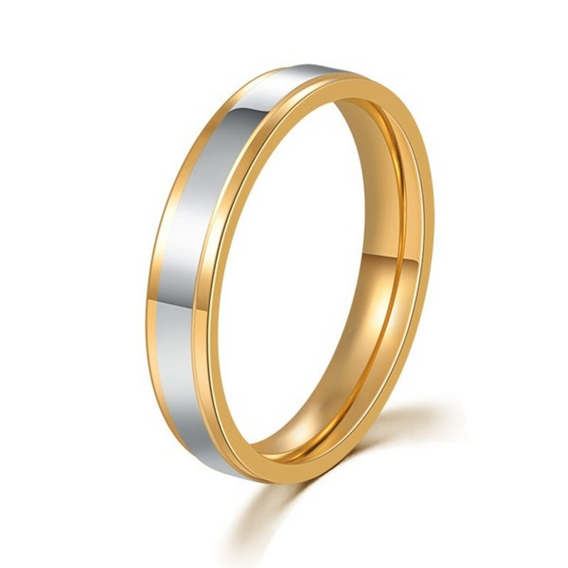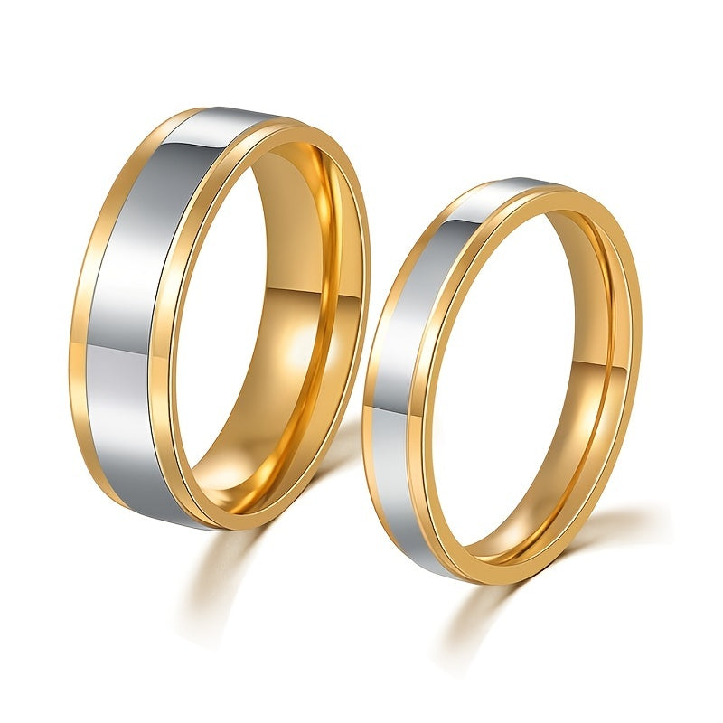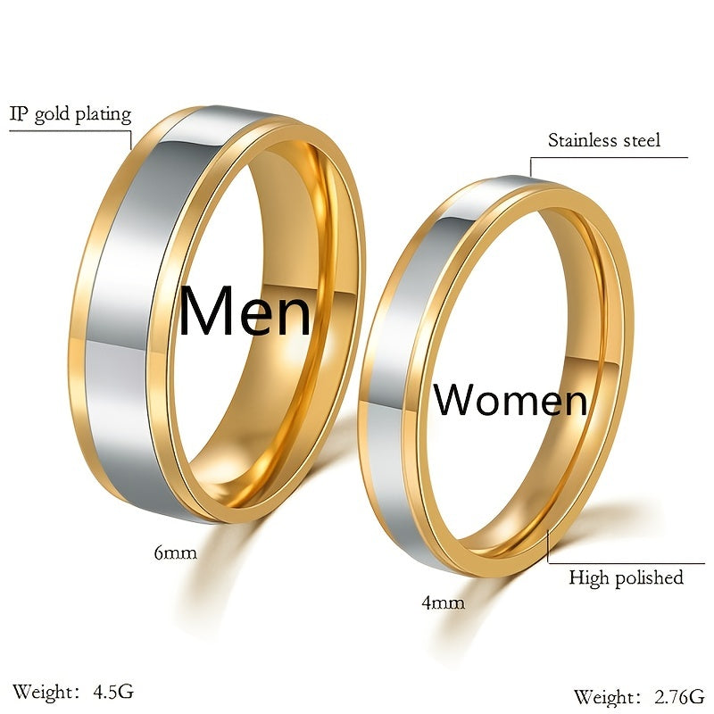 This elegant golden titanium steel ring is perfect for couples who want a casual and stylish engagement accessory.