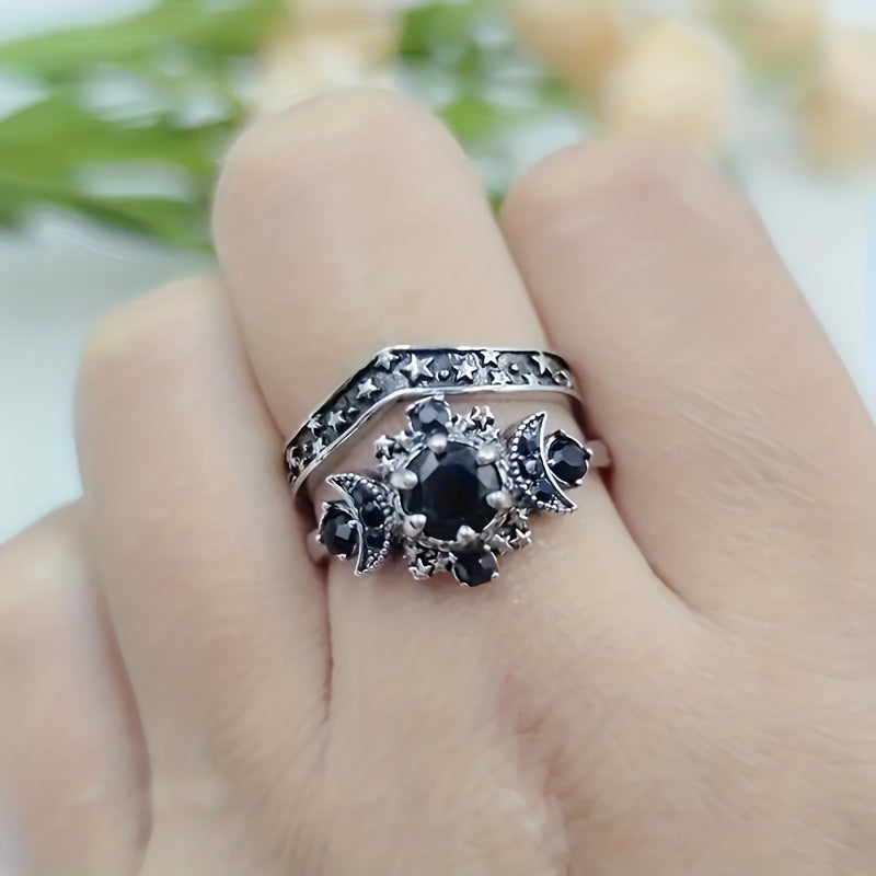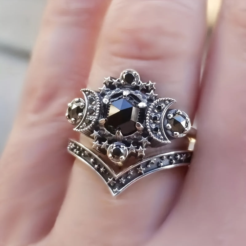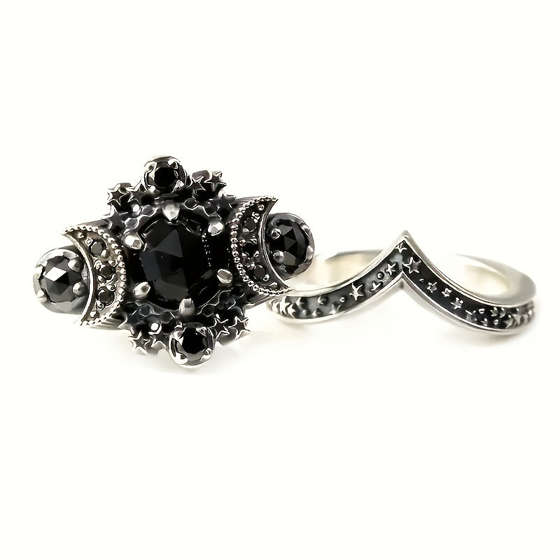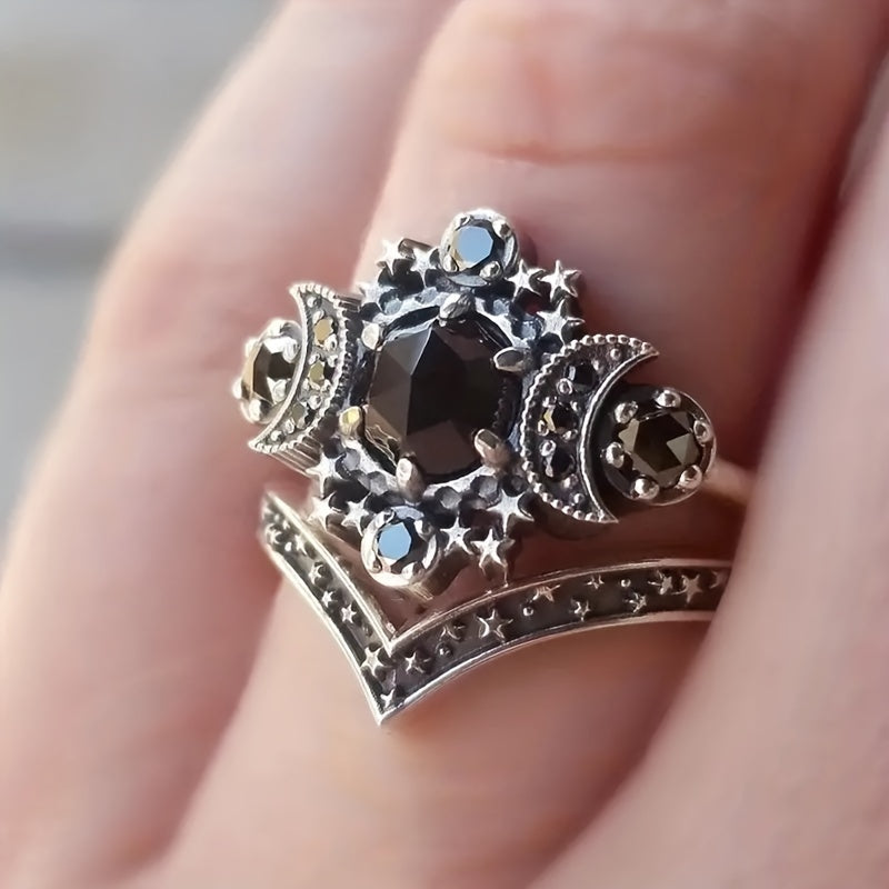 This men's gothic moon and star ring is a perfect anniversary gift. Crafted with attention to detail, it adds a touch of uniqueness to any outfit.