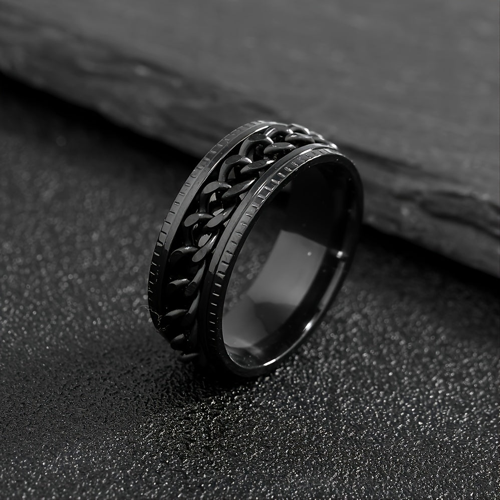 This ring is the perfect accessory for men who love hip hop fashion. Made of stainless steel, it features a hollow out chain design and embossed details.