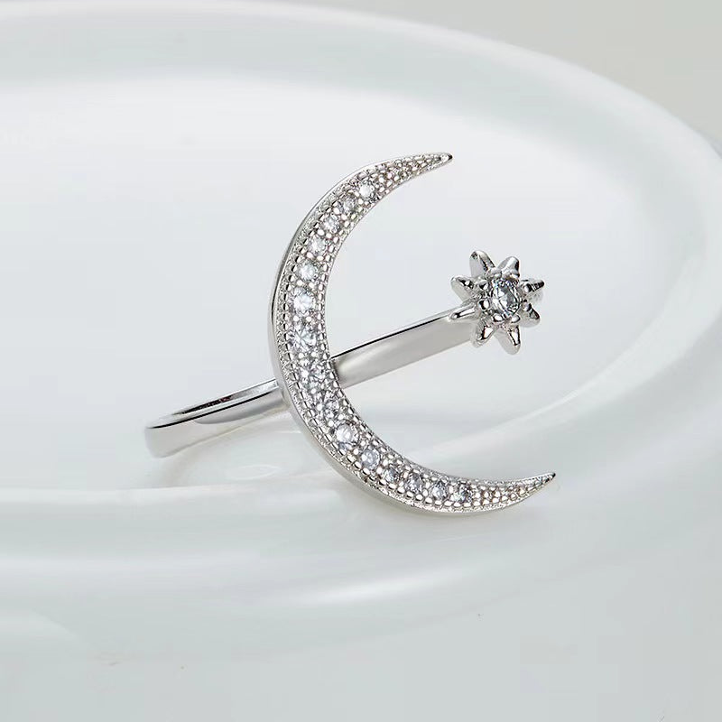 This alloy ring features a celestial design with moon and star elements, making it a perfect couple ring. It is stylish and unique, suitable for daily wear or special occasions.