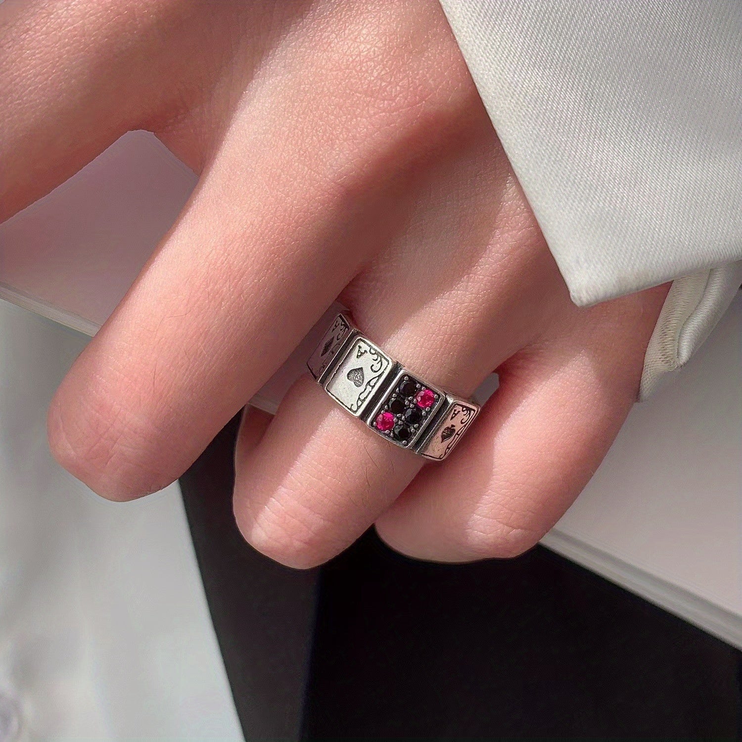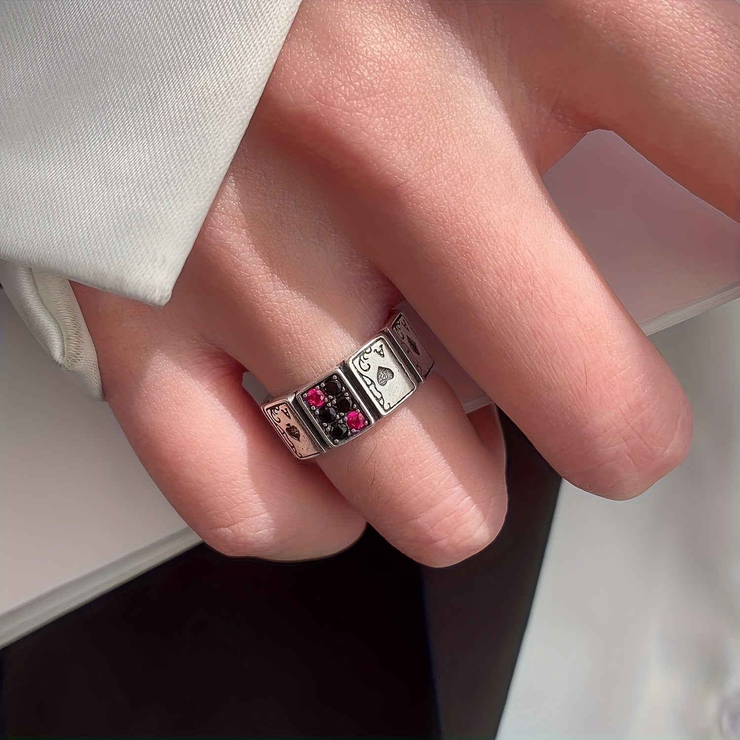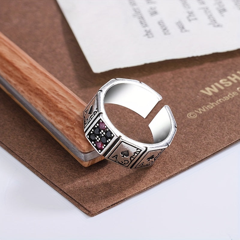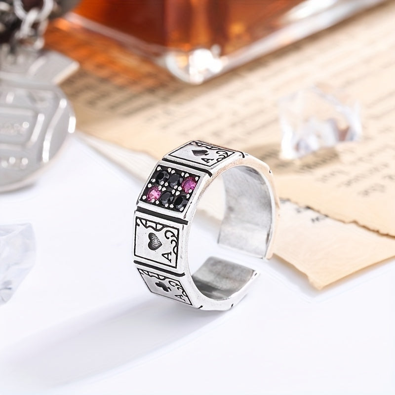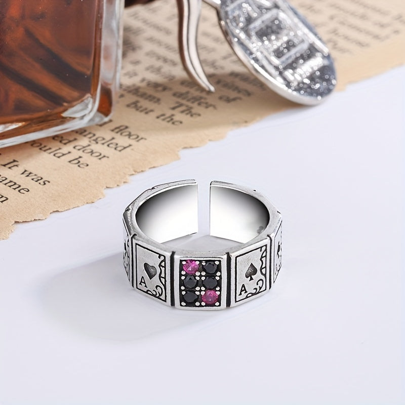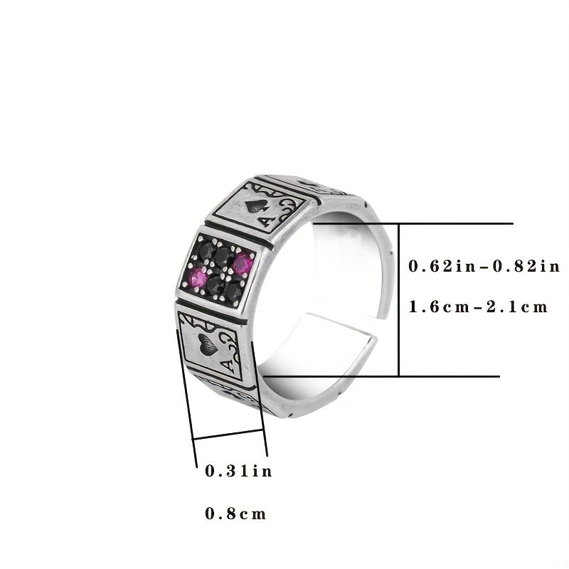This stylish men's ring features a poker shape design, made of high-quality alloy material. The ring size is adjustable, making it a versatile and trendy accessory for any outfit.