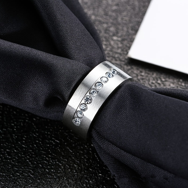 Add a touch of edgy style with this men's punk ring featuring a silver design and encrusted zircon. Made from high-quality stainless steel, this ring is durable and trendy.