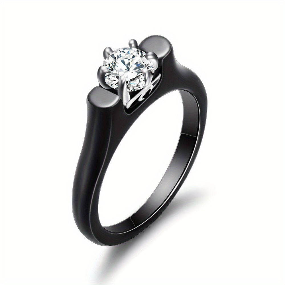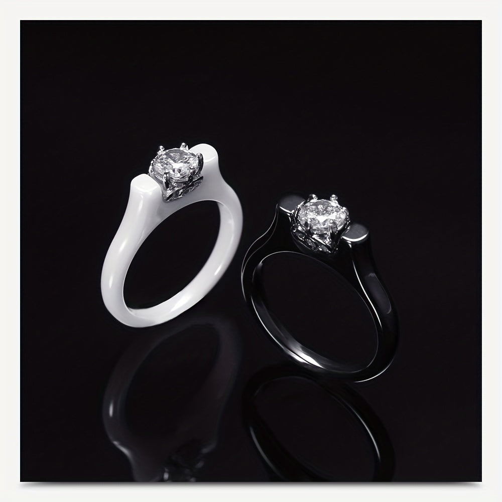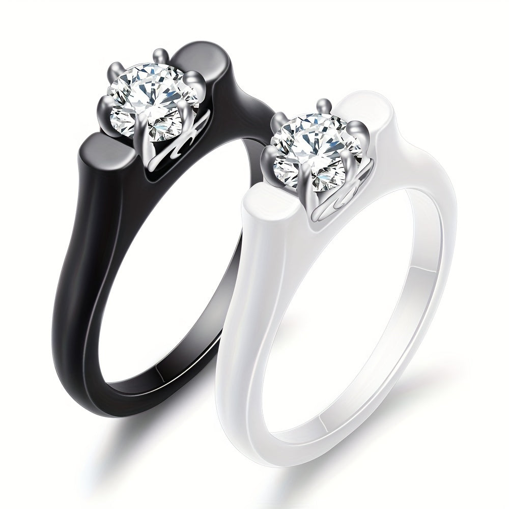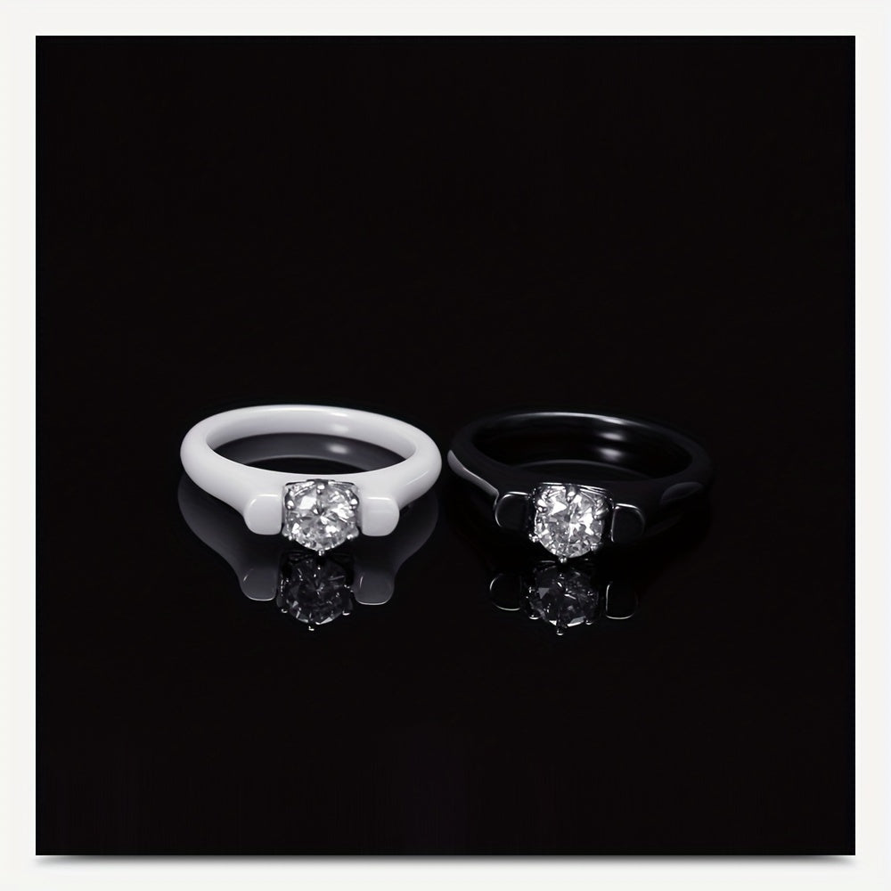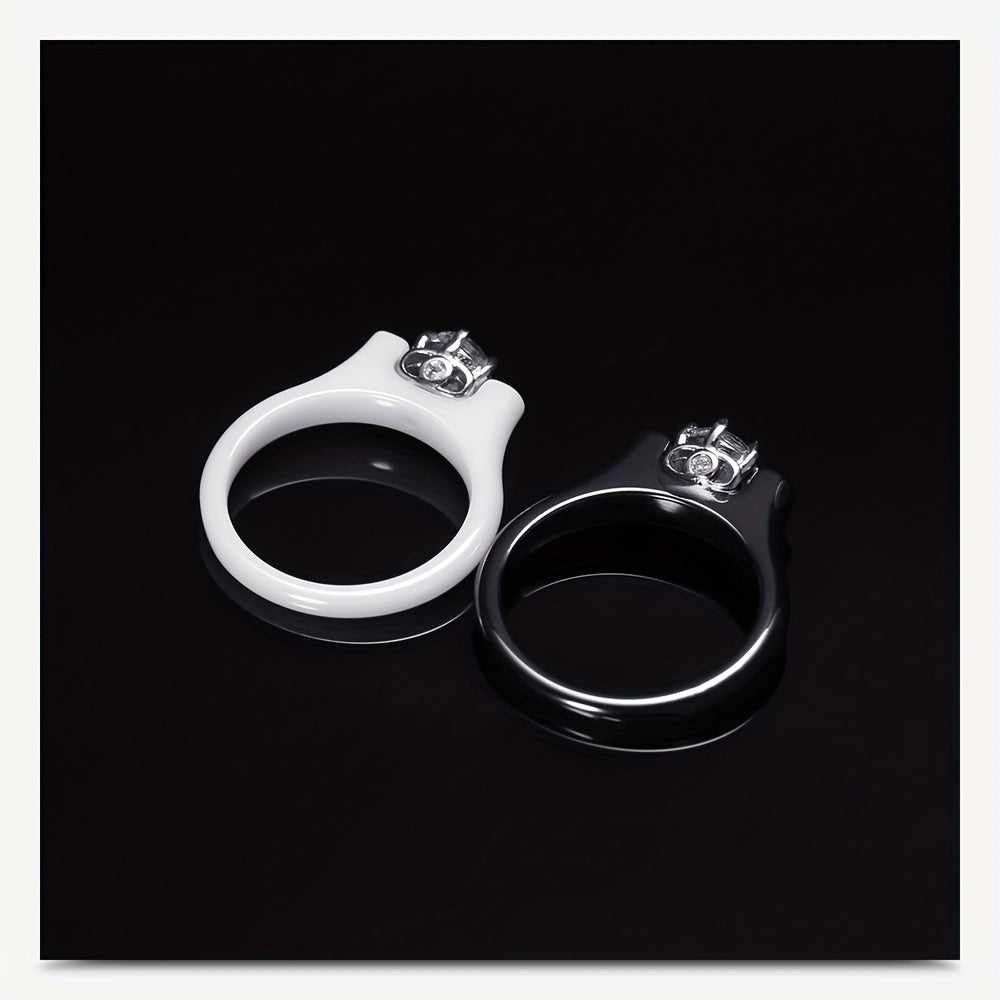 This men's ring features a retro design with ceramic inlay and zirconium embellishments. Perfect for couples.