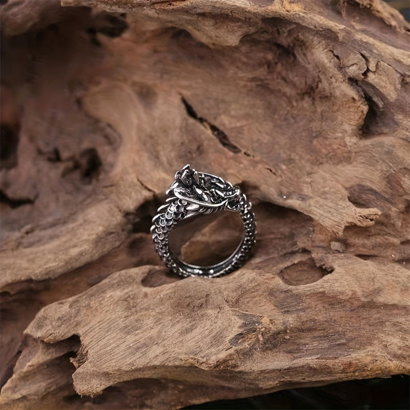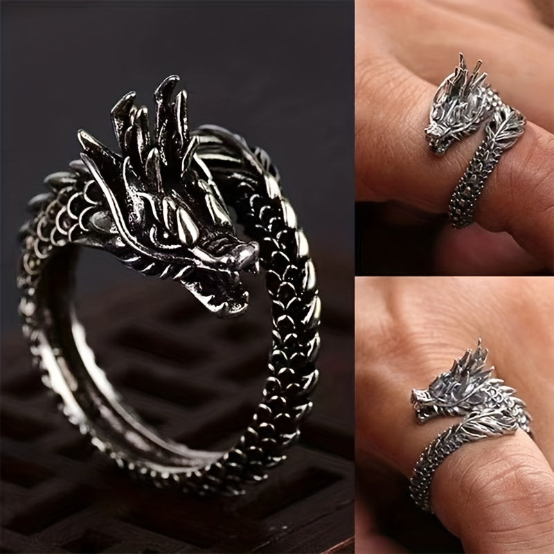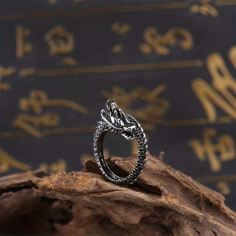 This men's retro dragon ring features a domineering and exaggerated design. The open ring style adds a unique touch to your overall look.