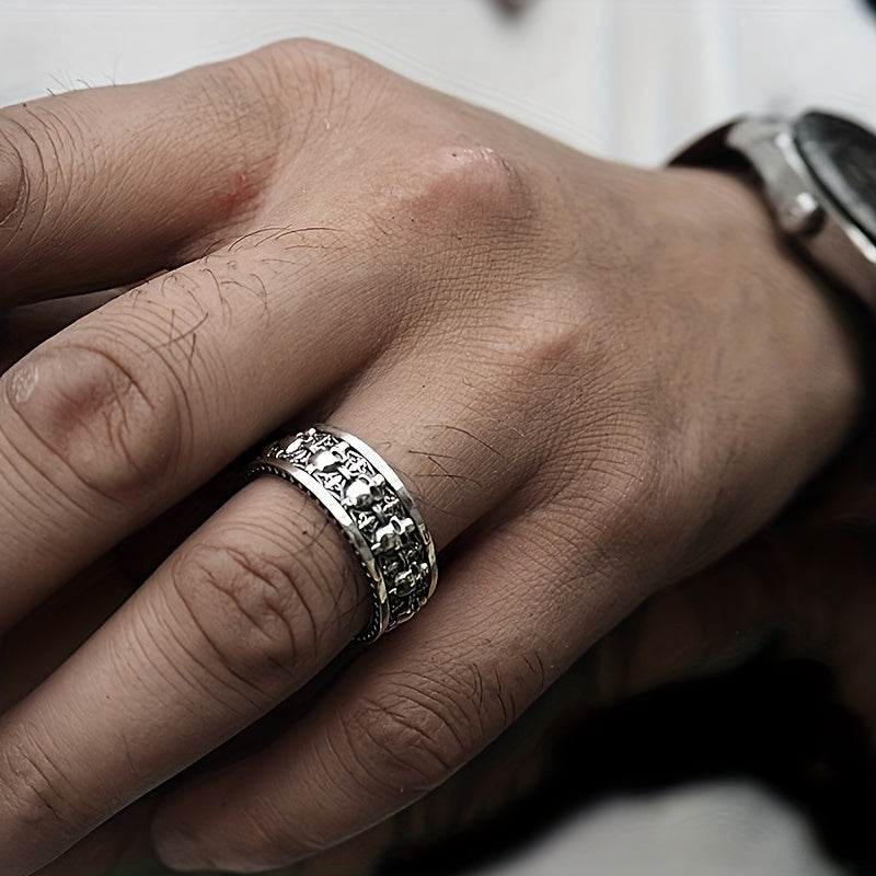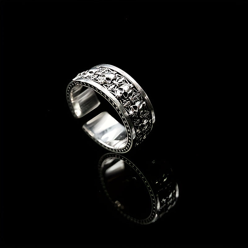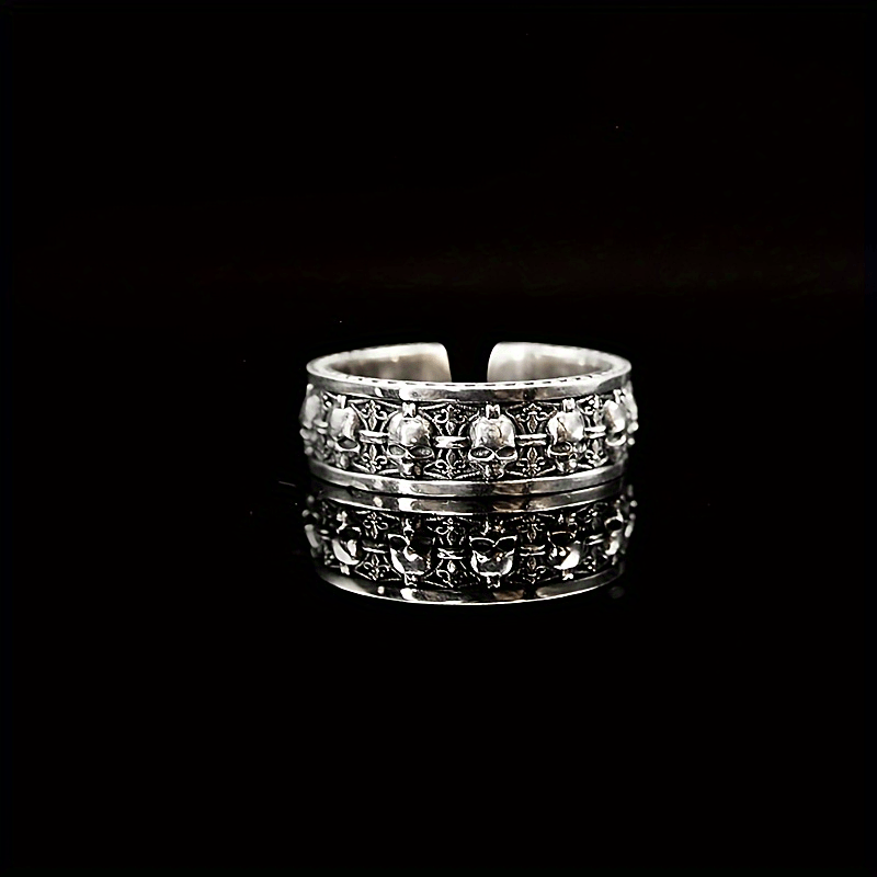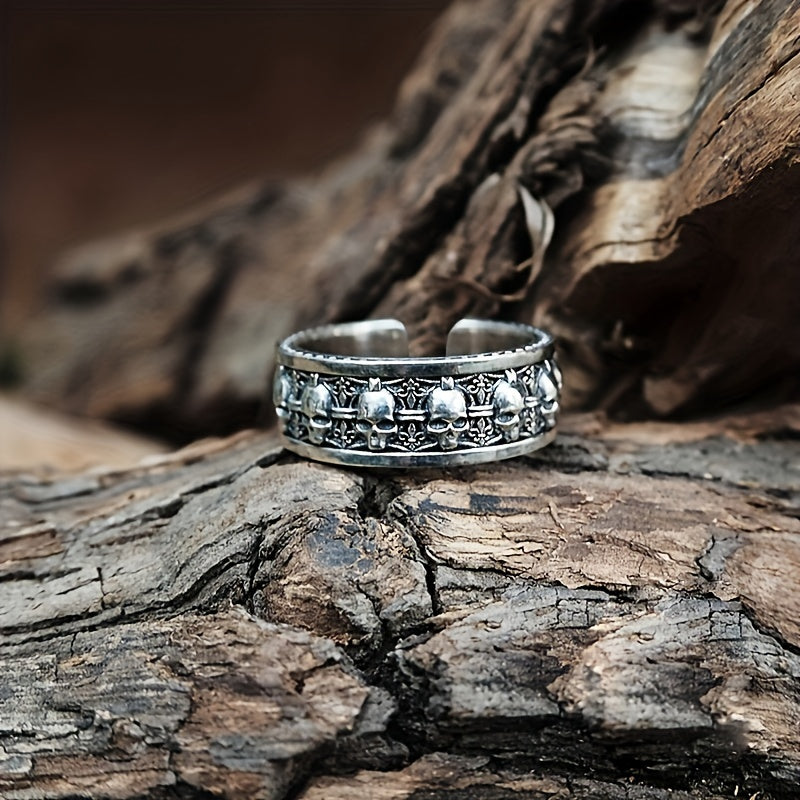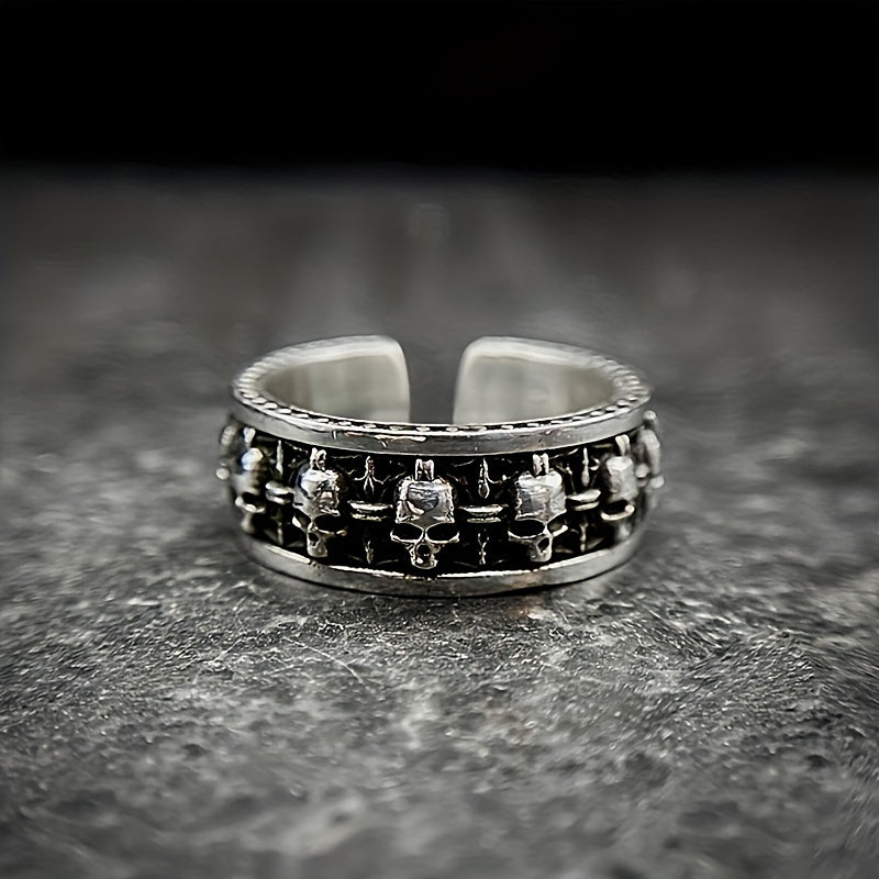 This men's ring features a retro skull design, perfect for hip hop and punk style. The ring is adjustable to fit various finger sizes.