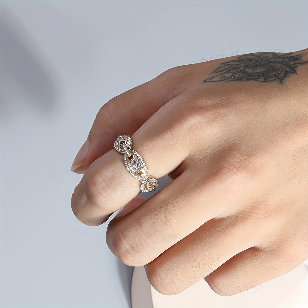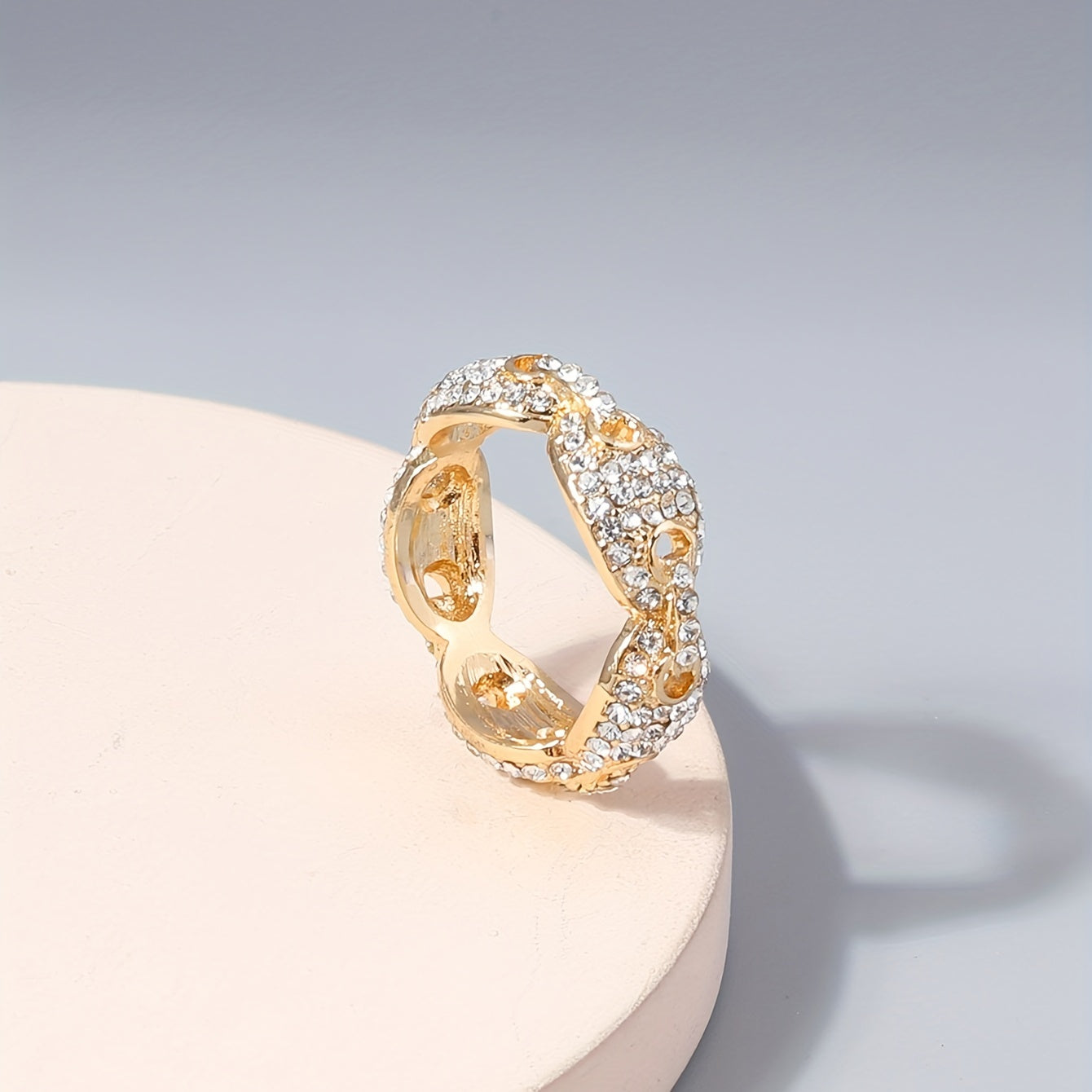Add some bling to your look with this stylish Rhinestone Chain Shaped Ring. Perfect for street parties and hip hop events.