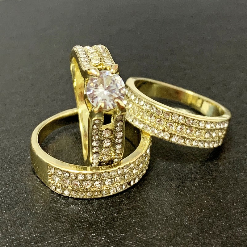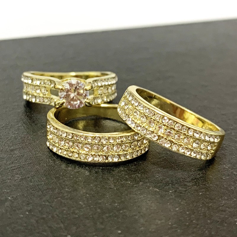 Elegant 3-piece set featuring a stunning sapphire engagement ring for men. Perfect for parties, weddings, and anniversaries. Makes a thoughtful gift.