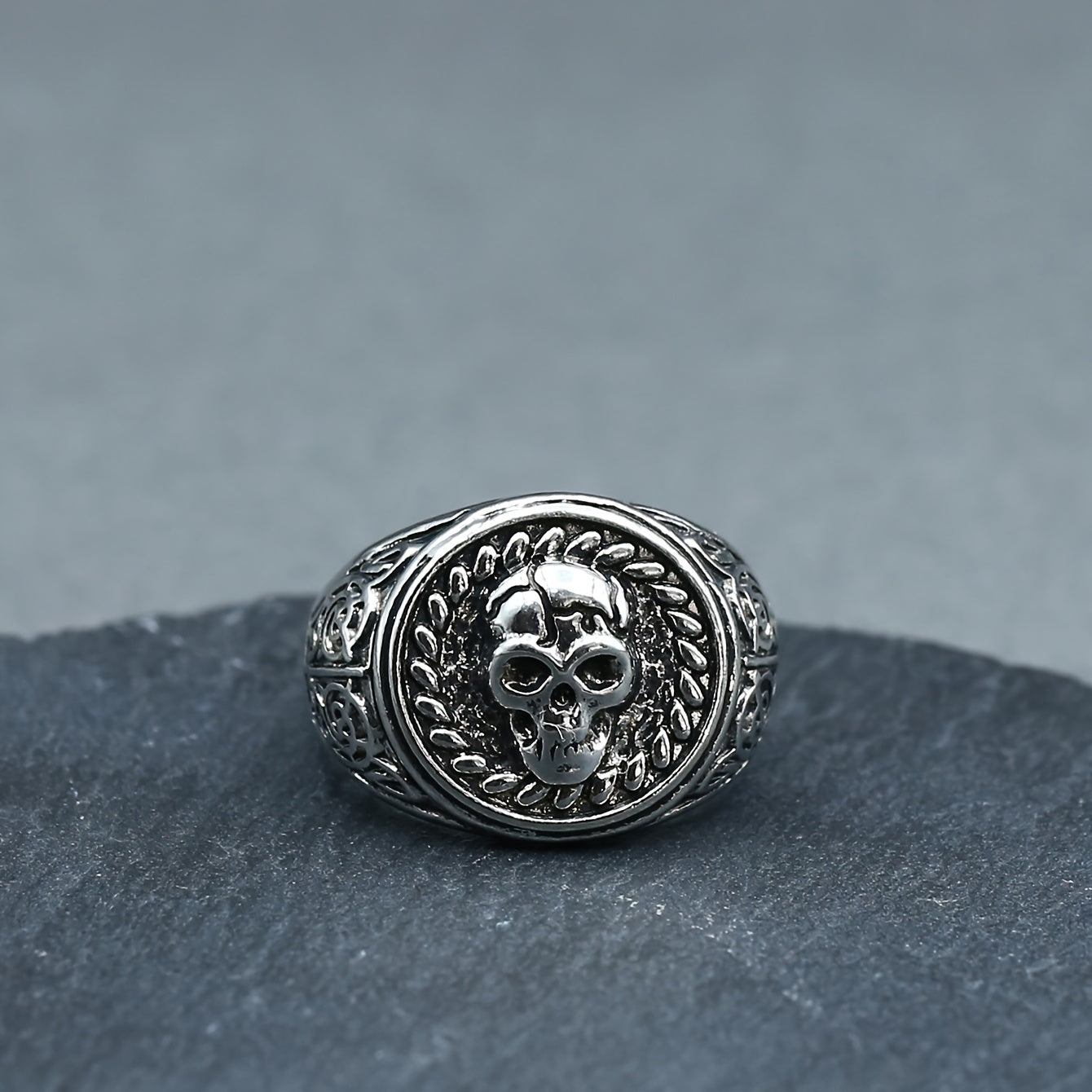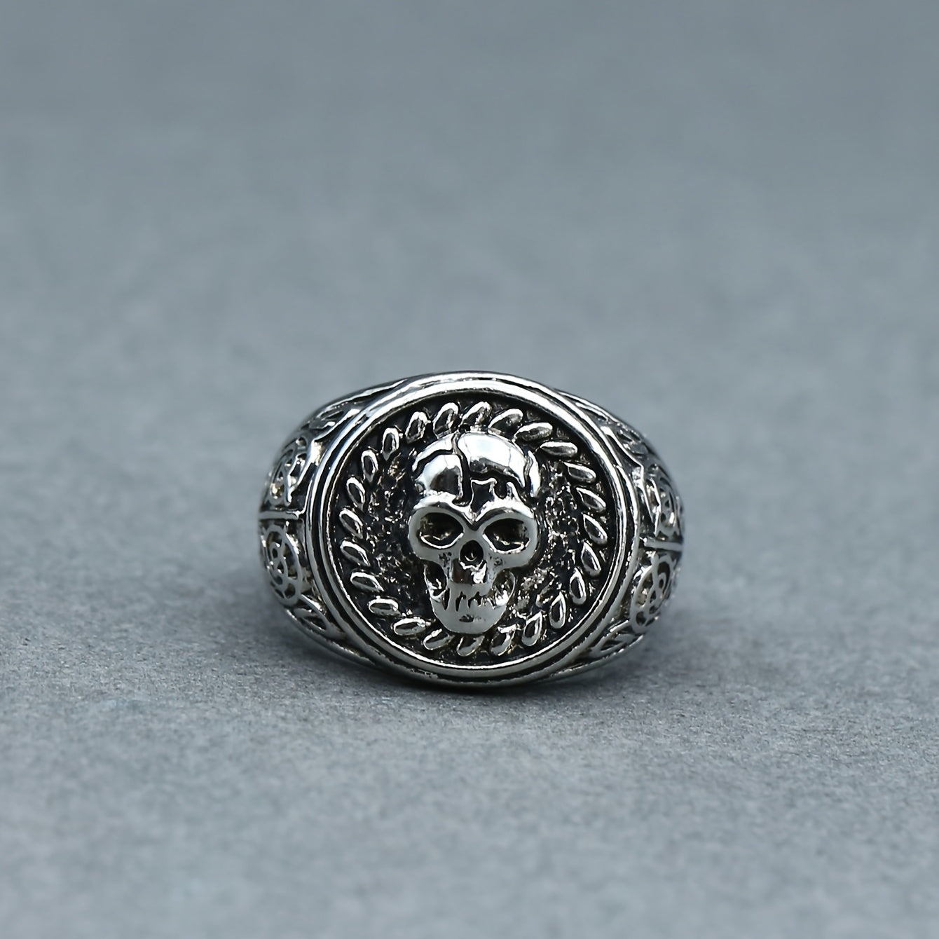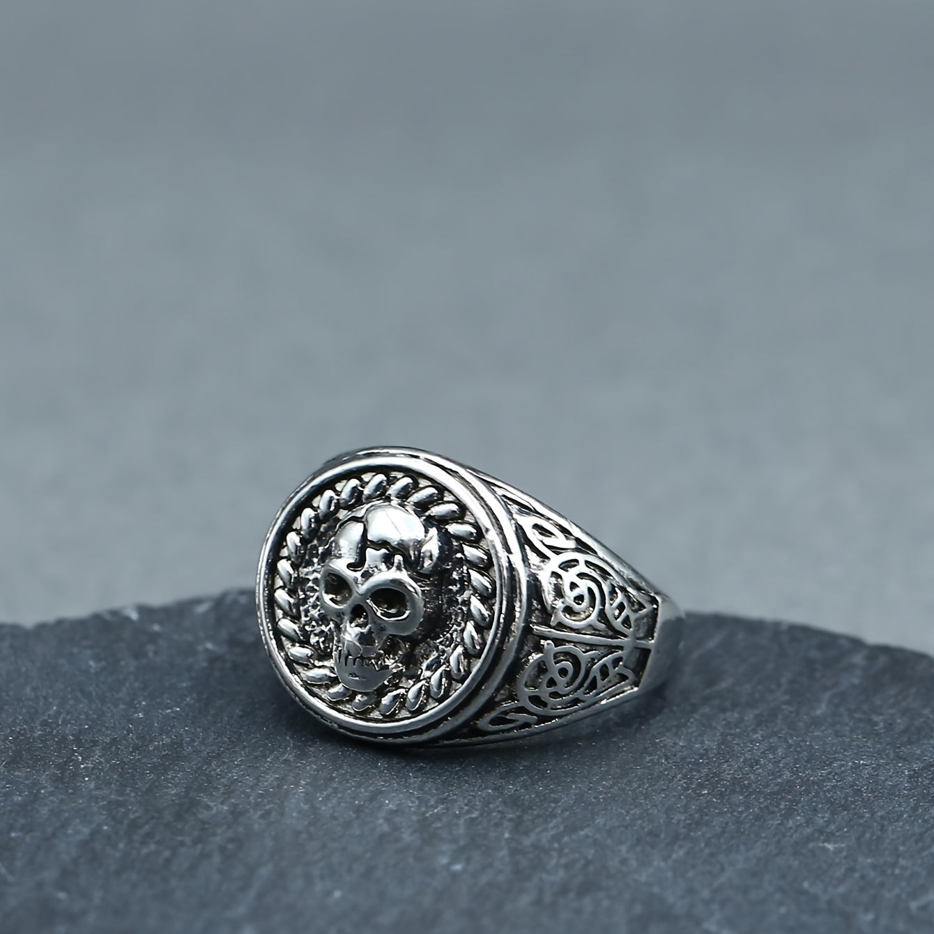Add an edgy touch to your look with this striking silver skull ring. Perfect for fans of gothic and biker style jewelry.
