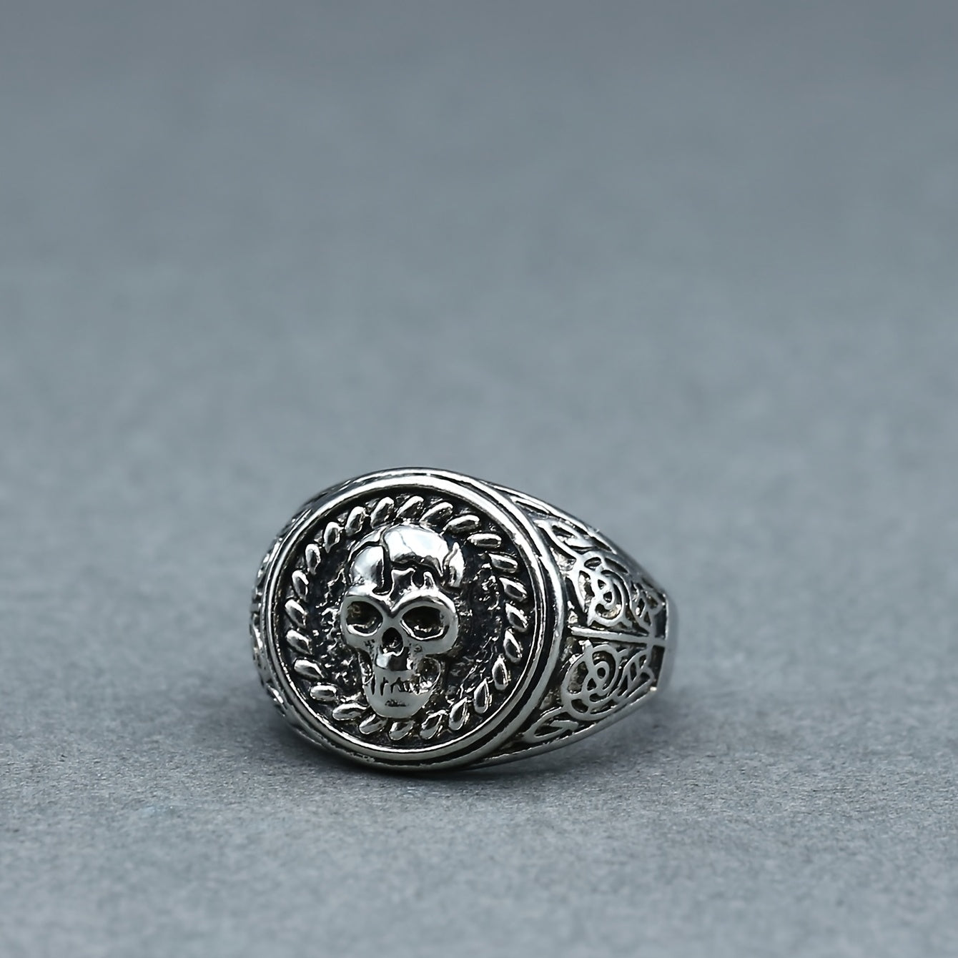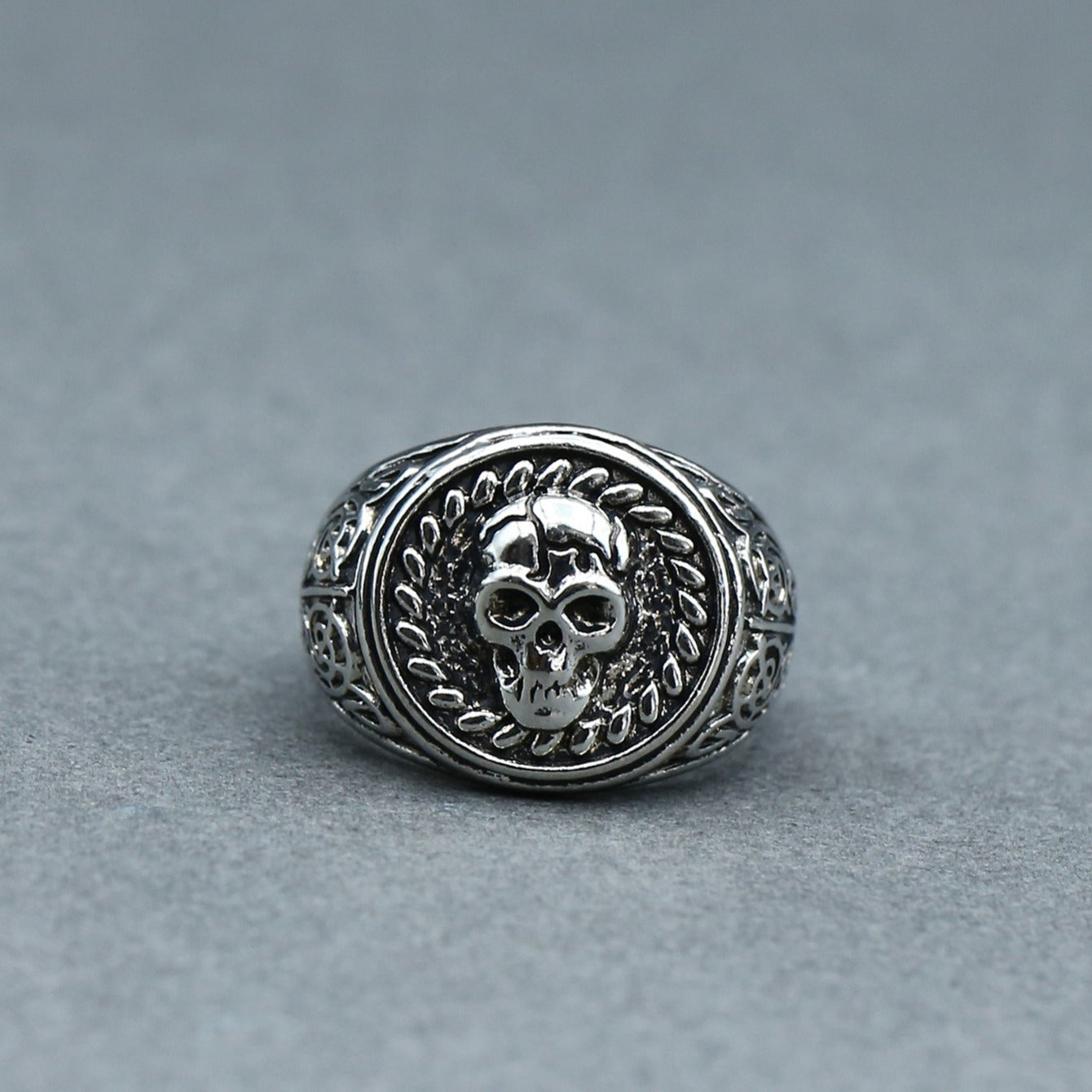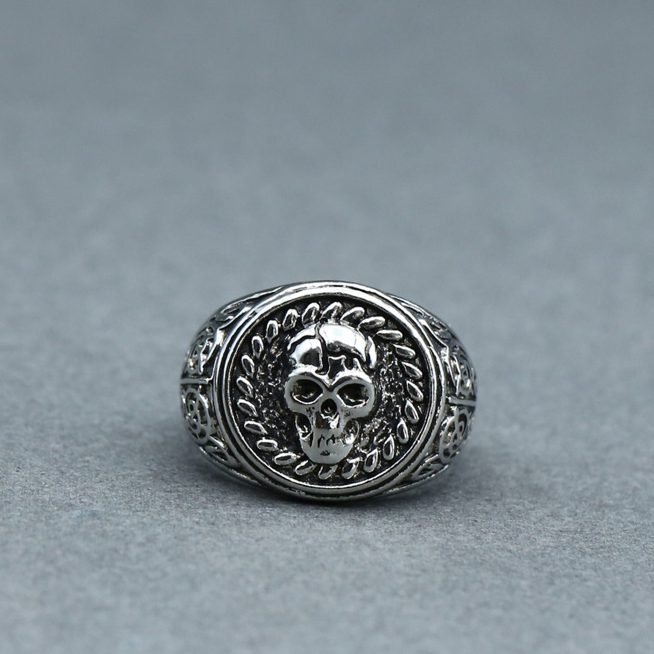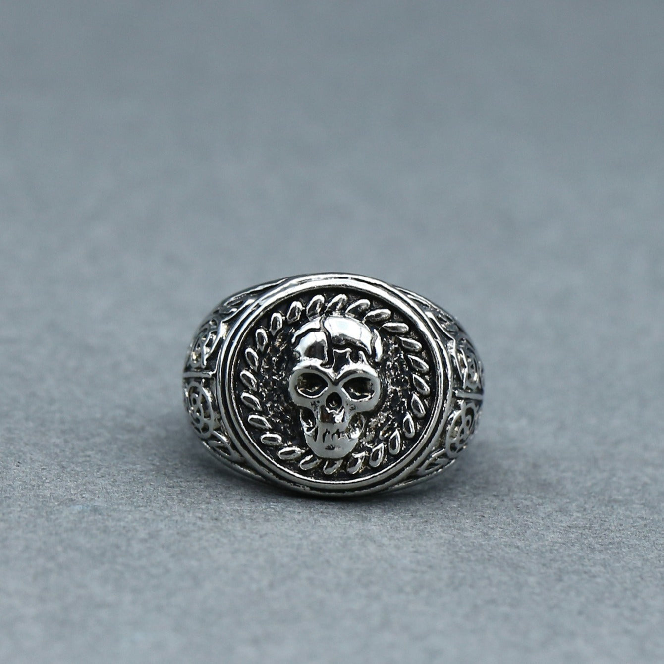Add an edgy touch to your look with this striking silver skull ring. Perfect for fans of gothic and biker style jewelry.