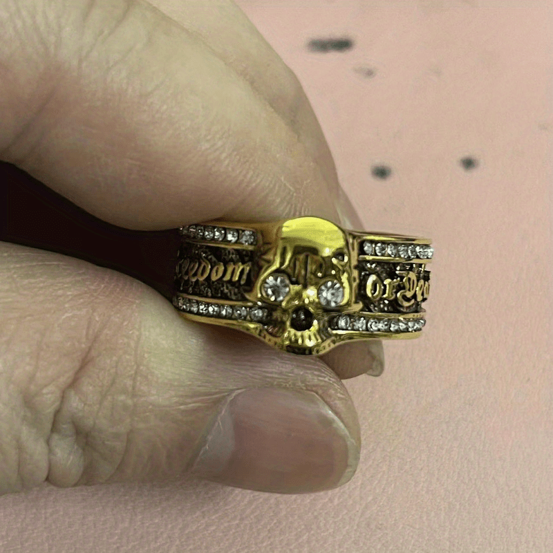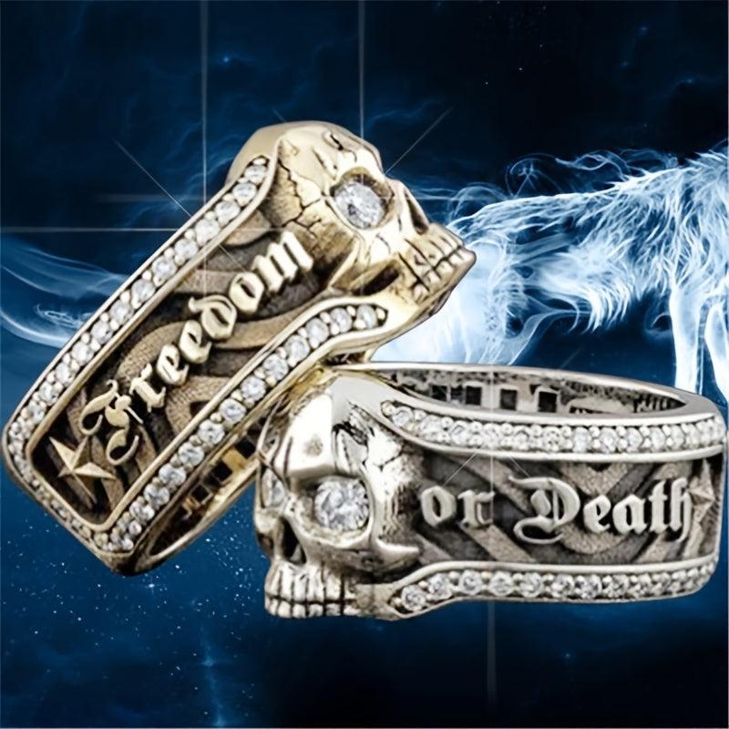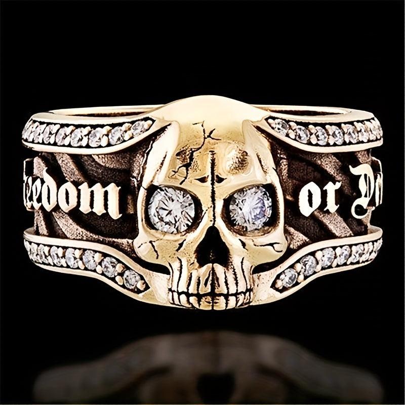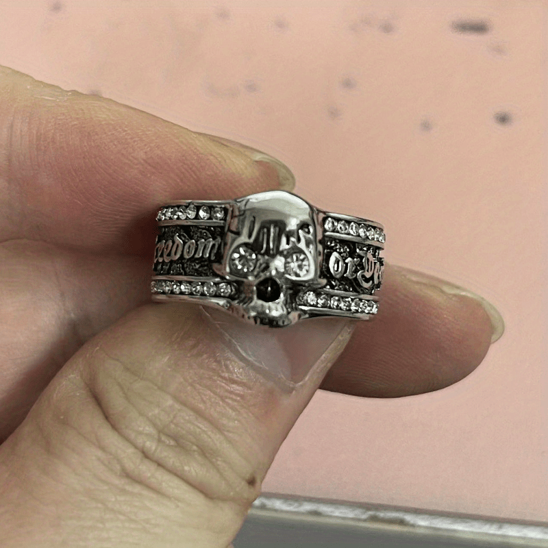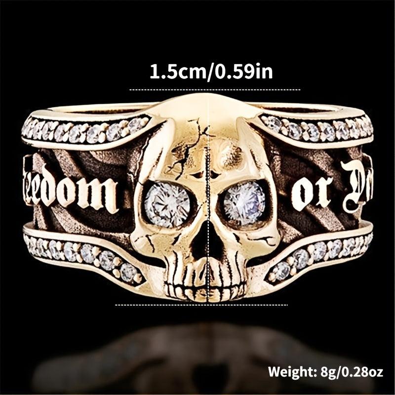 This men's ring features a skull design with a gemstone, perfect for Halloween or adding a punk style to your look. Ideal for hip hop and biker fashion.