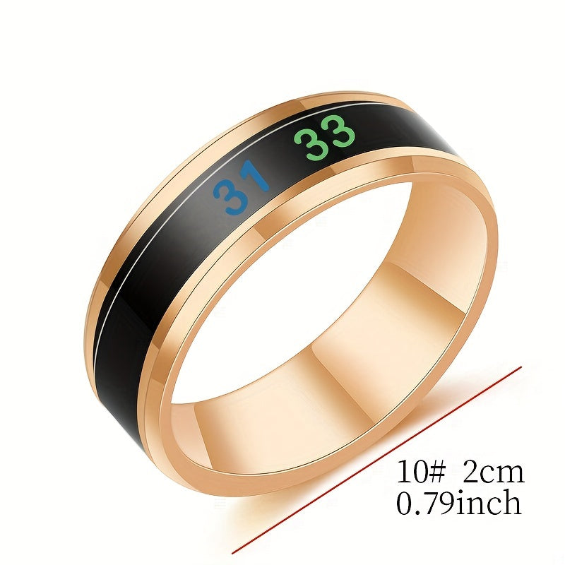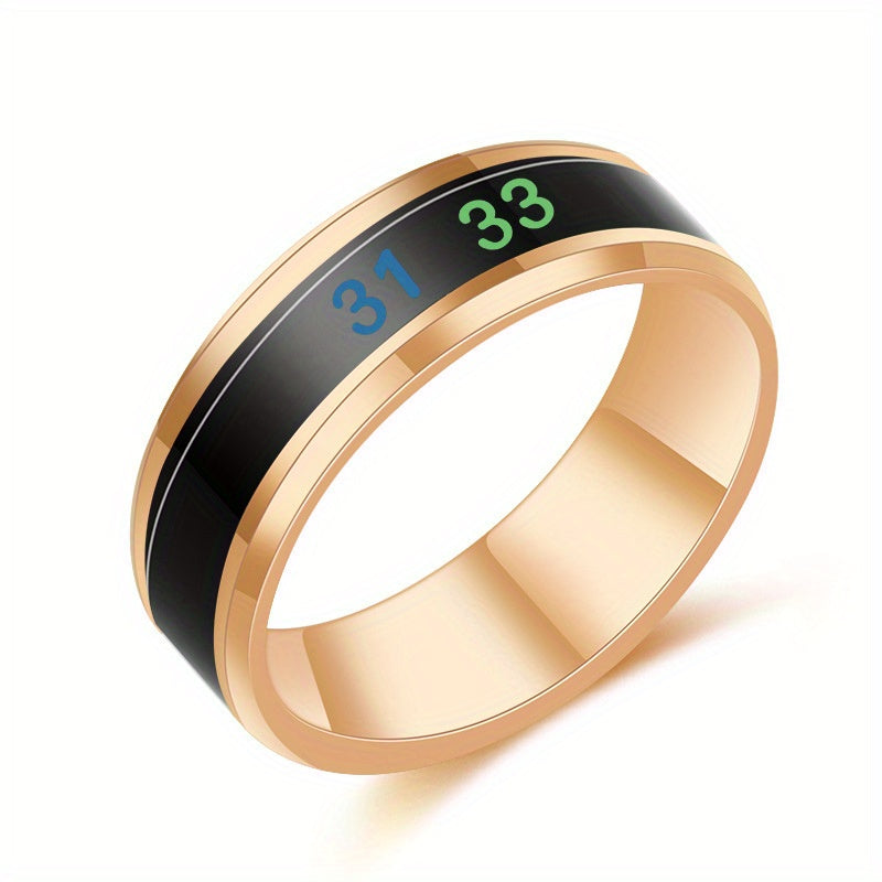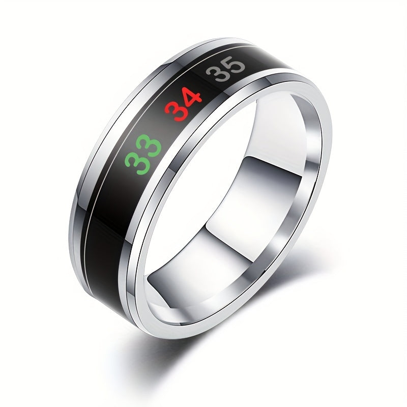 Stay stylish and trendy with this temperature-sensitive ring that changes color based on your mood. Made of durable stainless steel, this ring is a perfect accessory for any outfit.
