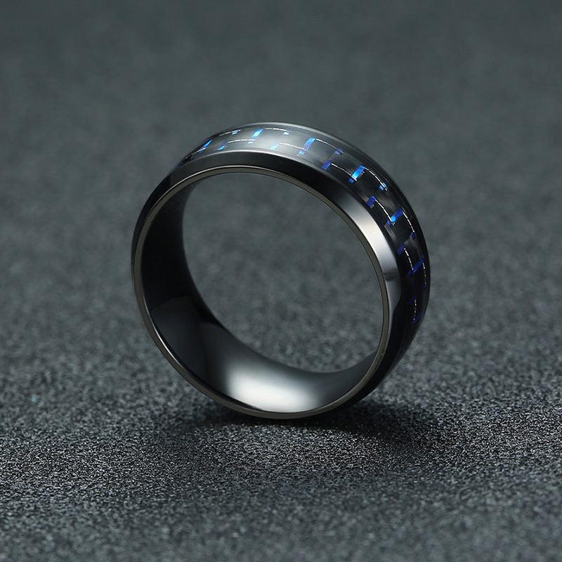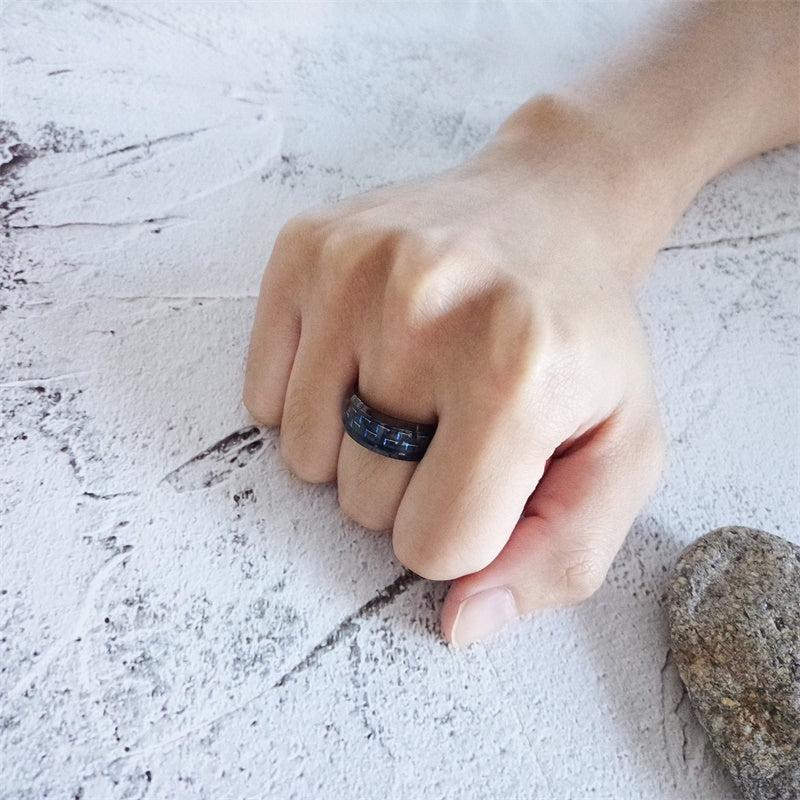 This stylish ring features a combination of stainless steel and carbon fiber for a modern look. The titanium steel band is durable and long-lasting, making it a great accessory for everyday wear.