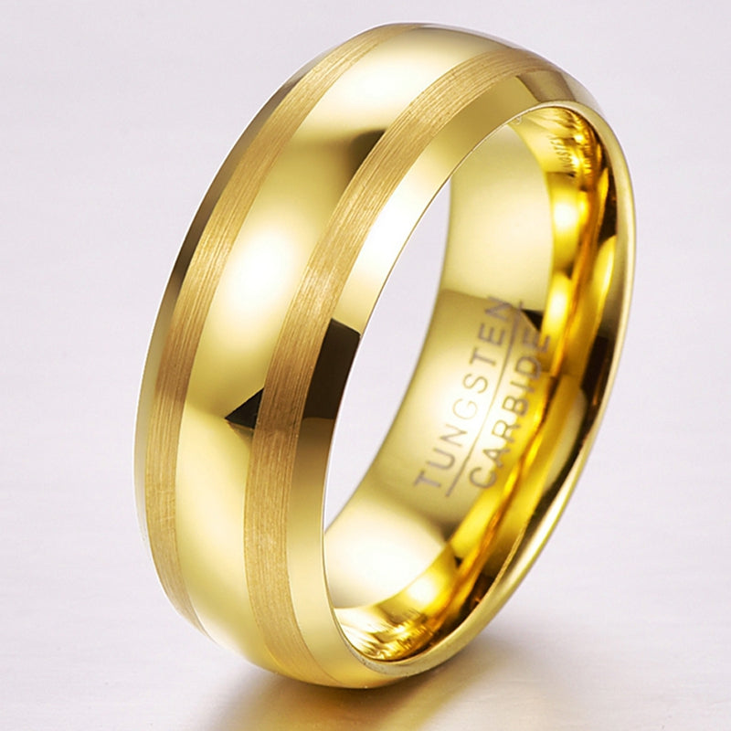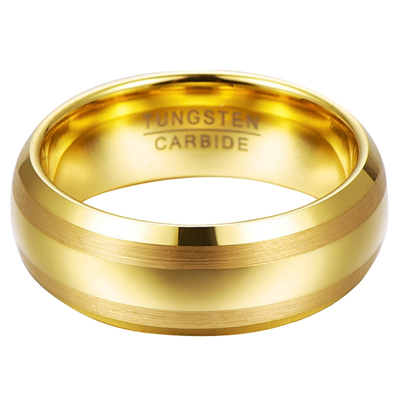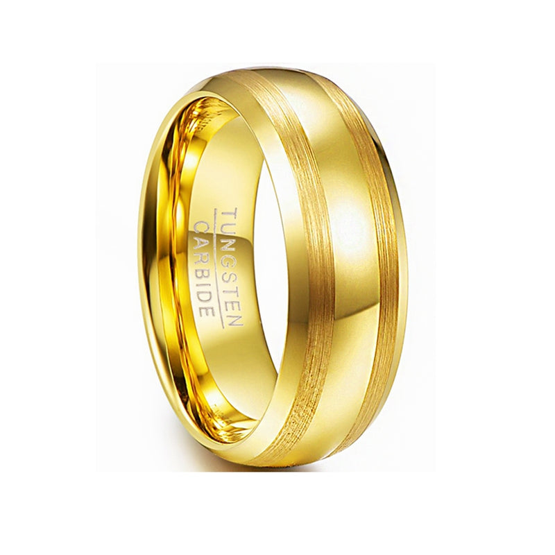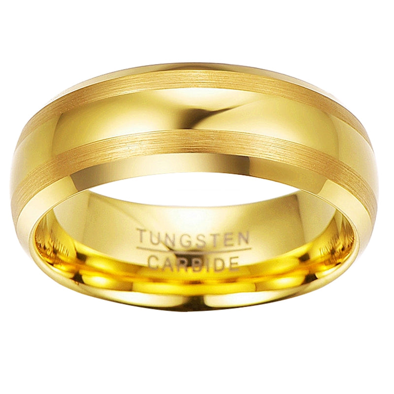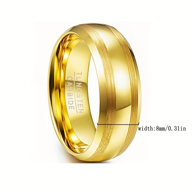 This men's tungsten ring features a plated arc top with frosted middle and polished finish. It is available in size 7 to 12.