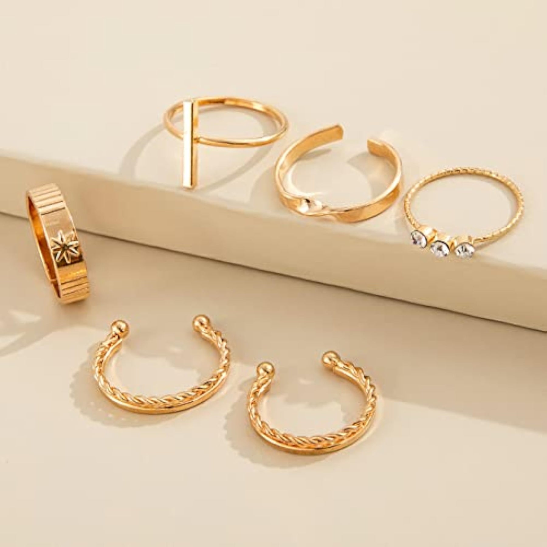 Upgrade your style with this set of 6 stylish metal boho midi finger rings. Perfect for adding a trendy touch to any outfit.