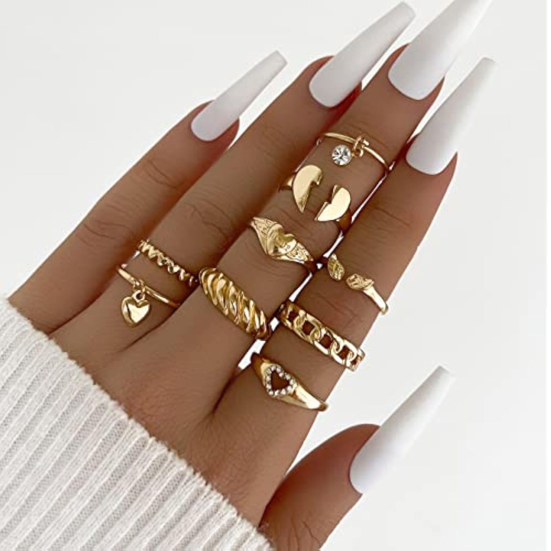 Enhance your boho style with this set of metal midi rings. Perfect for stacking or wearing individually.