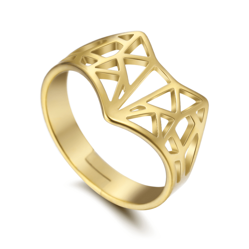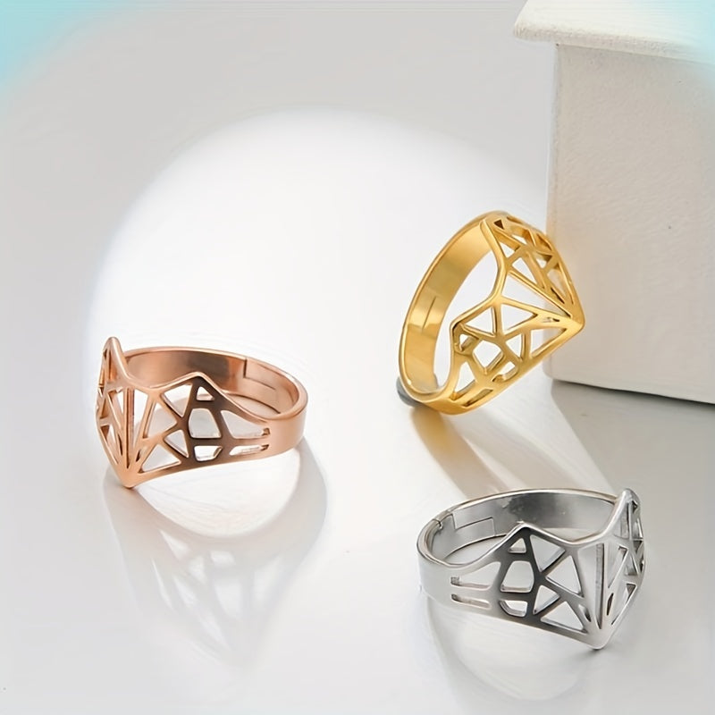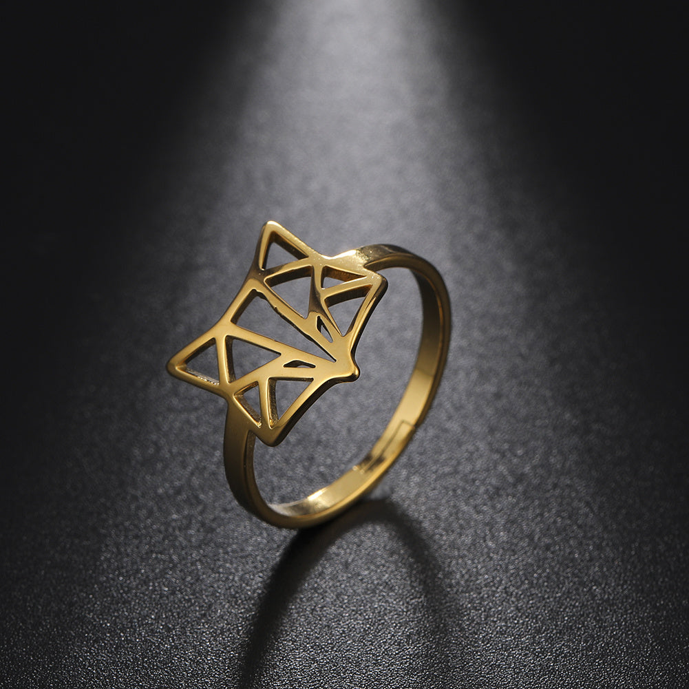This stunning origami fox ring is made of golden stainless steel, featuring a hollow animal design. Perfect as a wedding band or anniversary gift for men.