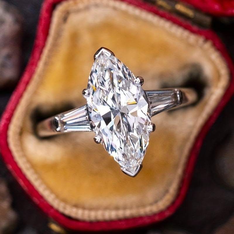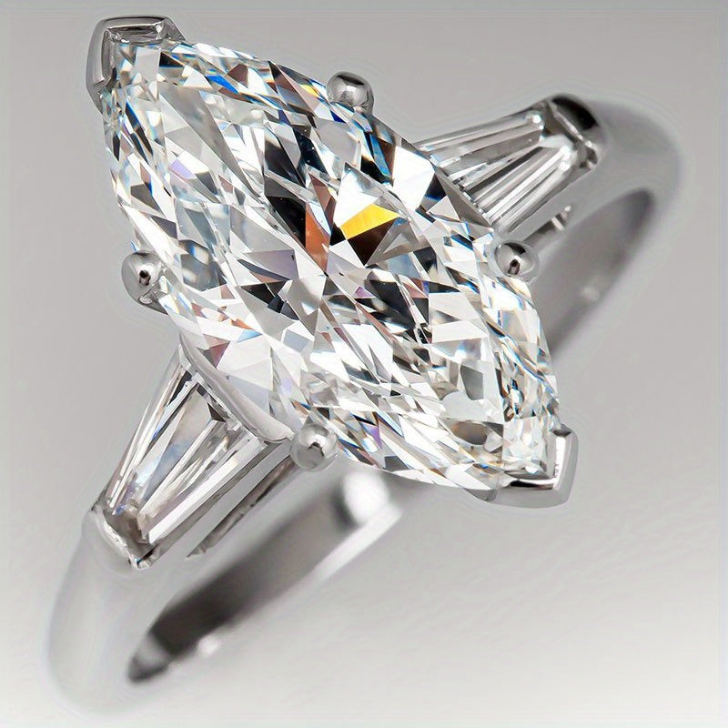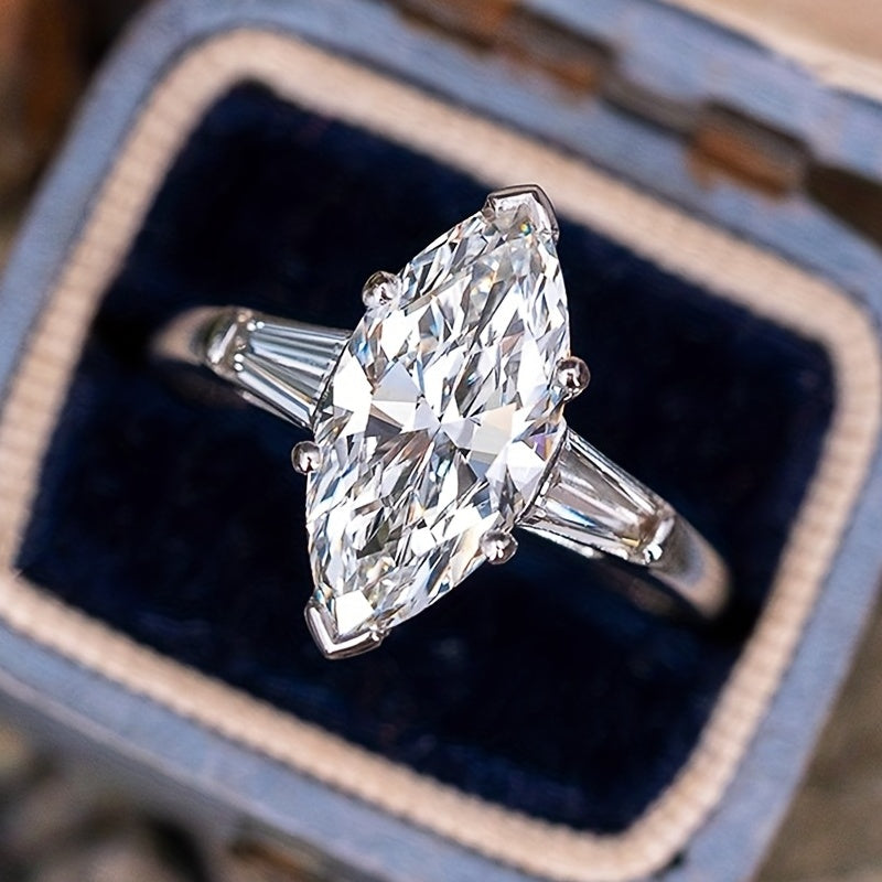 This dainty promise ring features an inlaid solitaire oval zircon, perfect for engagement, wedding, or evening party. Adorn your finger with this elegant piece of jewelry.