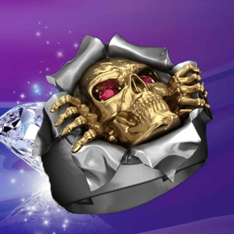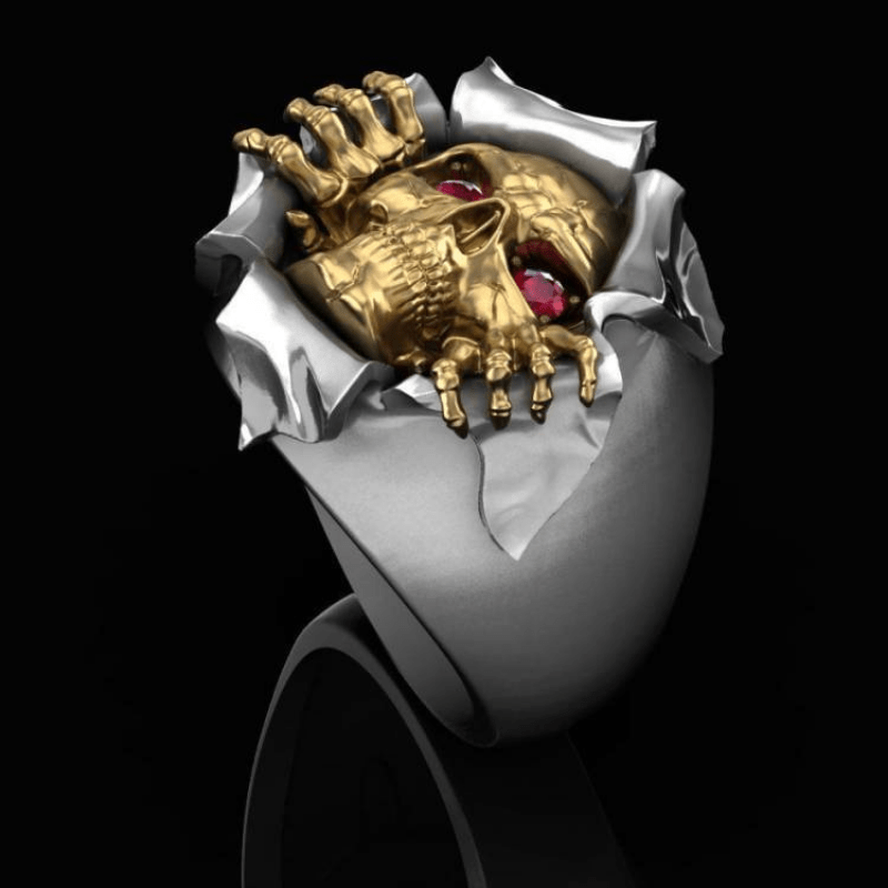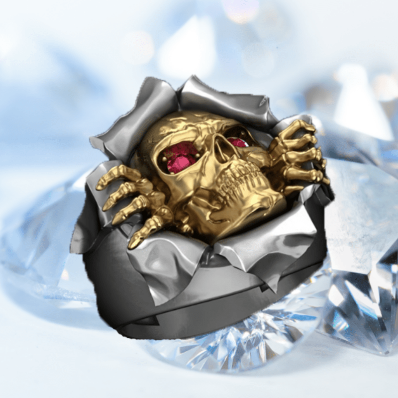 This Punk Skull Ring features a retro cracked devil head design with an inlaid ruby, making it a bold statement piece for men.