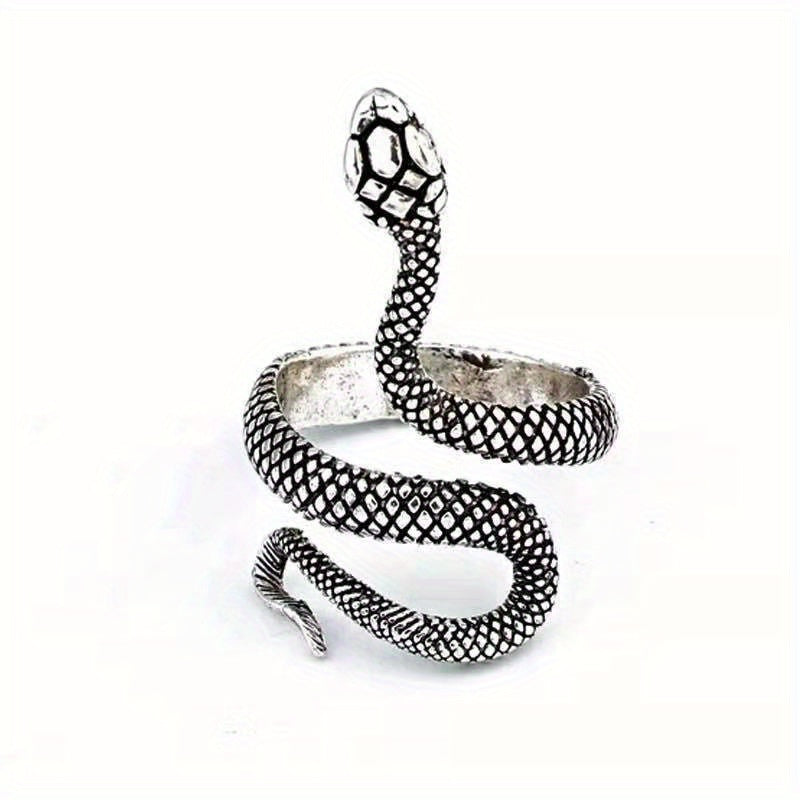 Add a touch of vintage charm to your style with this silver plated snake ring. Perfect for both men and women, this retro ring will make a bold statement.