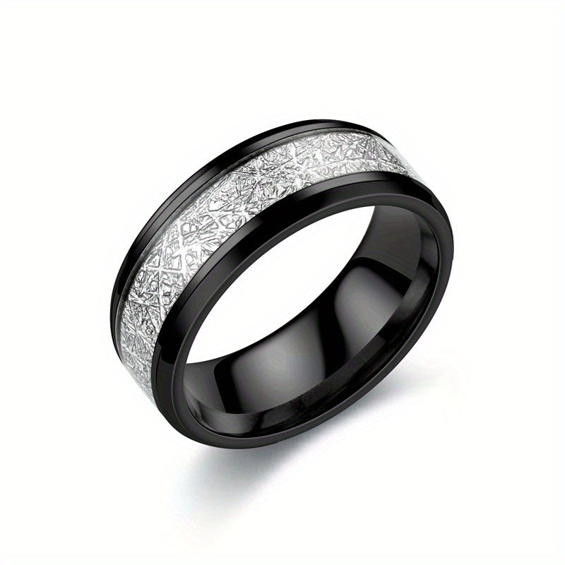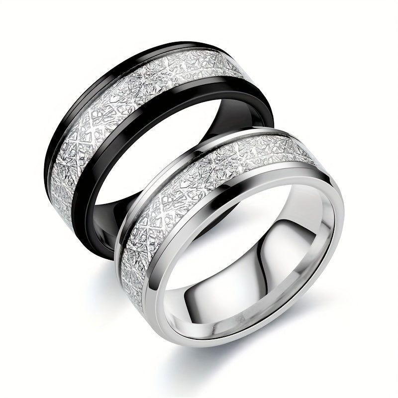 Elegant and fashionable titanium steel ring featuring a rime pattern, perfect for couples. Ideal as a holiday gift.