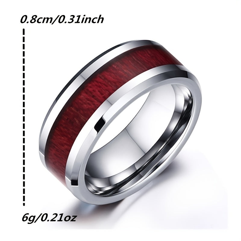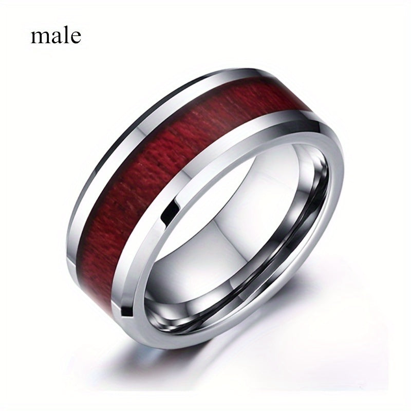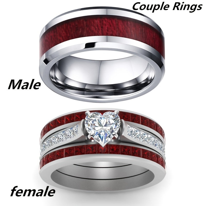 Express your love with this exquisite heart-shaped ring featuring an artificial ruby. Crafted from high-quality stainless steel with a red wood grain finish, this ring is perfect for couples.