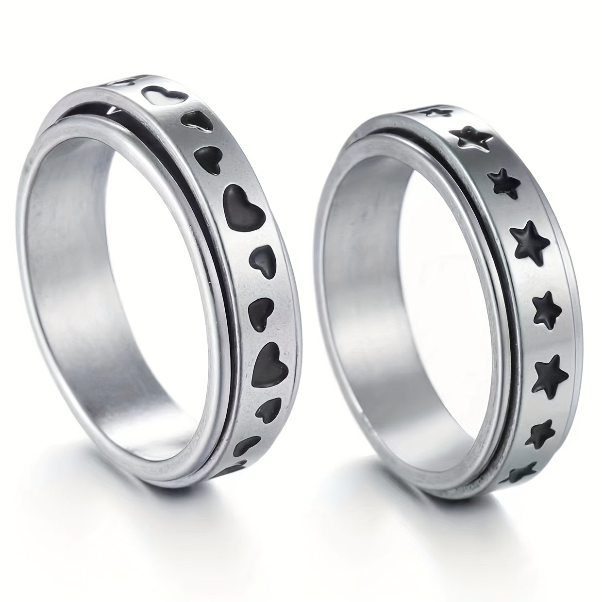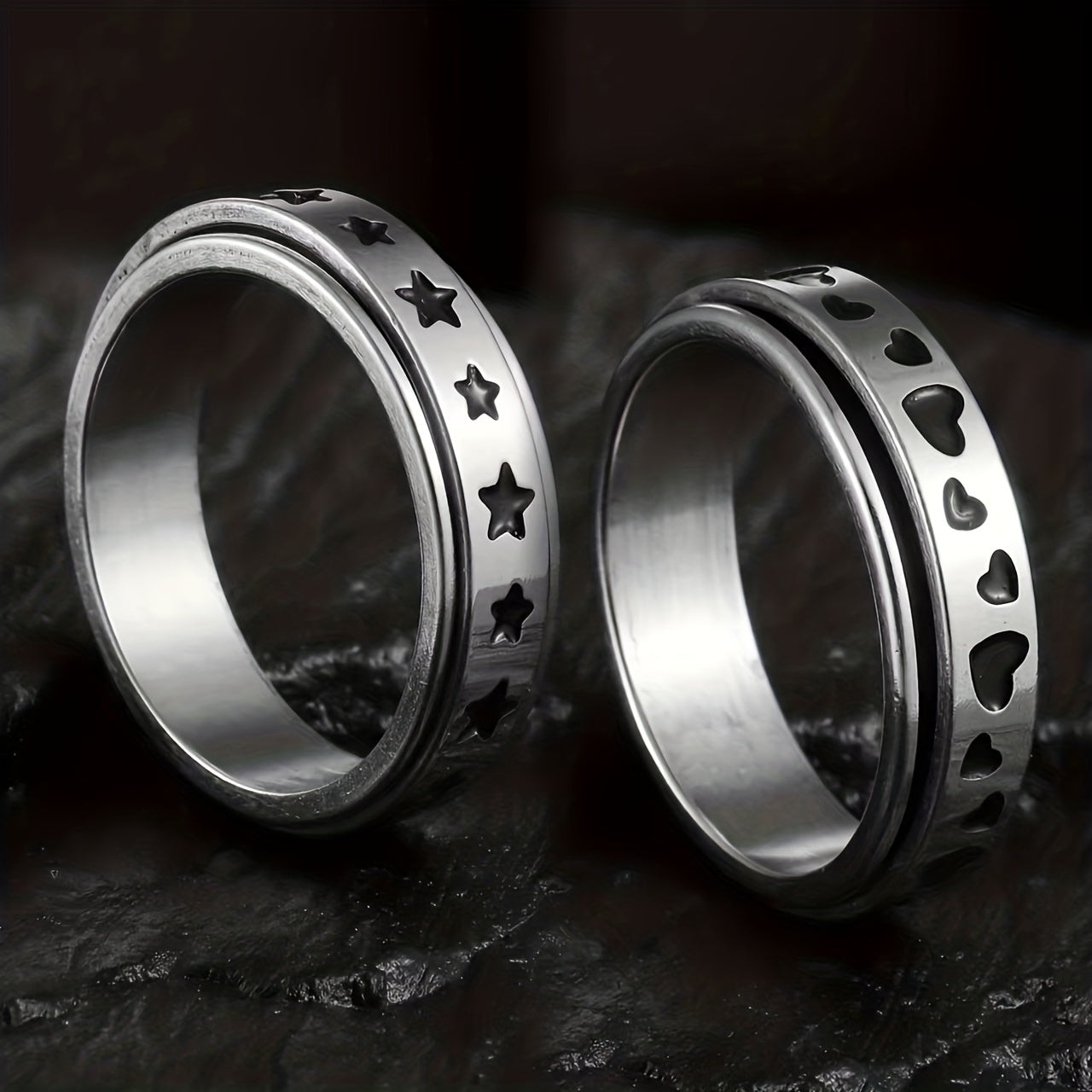 This stylish ring features star or heart pattern design, perfect for stress relief. Made of high-quality stainless steel, it is durable and comfortable to wear.
