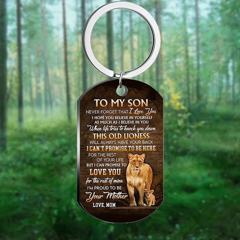 This stylish keychain is perfect for your son and features a lion pendant. Made of durable stainless steel, it is great for both men and women.