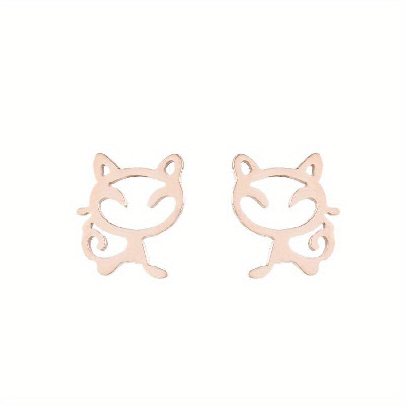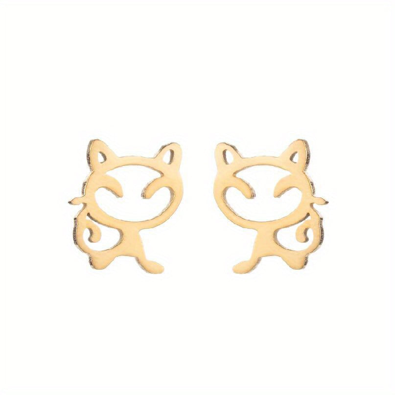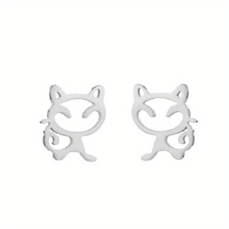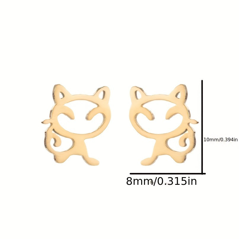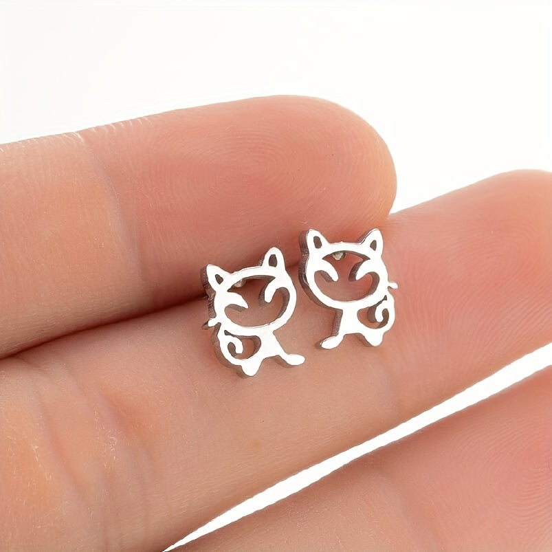 Uniquely designed set featuring a cat pattern men's ring and niche small animal ear studs made of high-quality stainless steel.