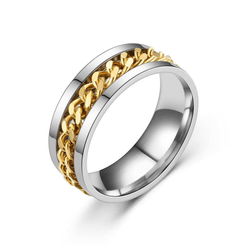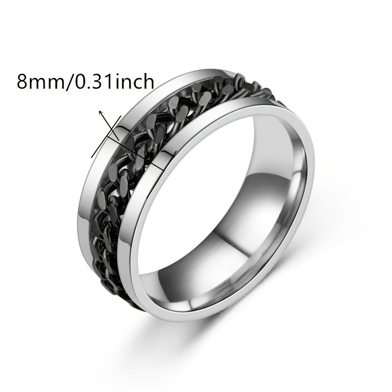 This stainless steel ring features a rotating design for a unique punk style. It's a great wedding jewelry gift for men.