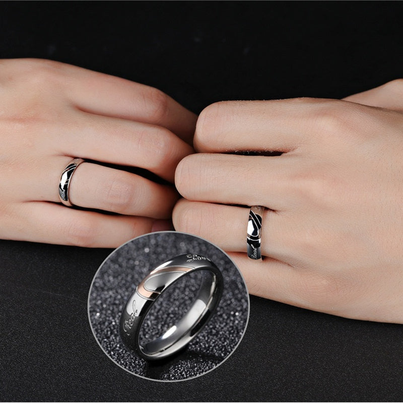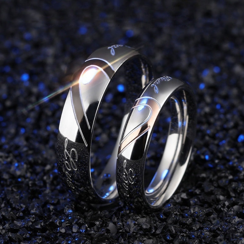 This couple ring set is crafted from stainless steel featuring a romantic heart design. Ideal for wedding or special occasions.
