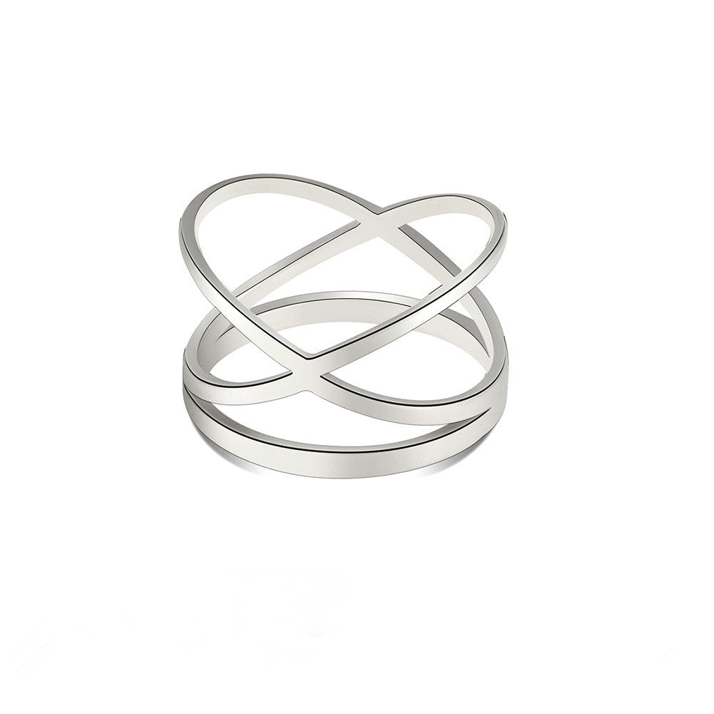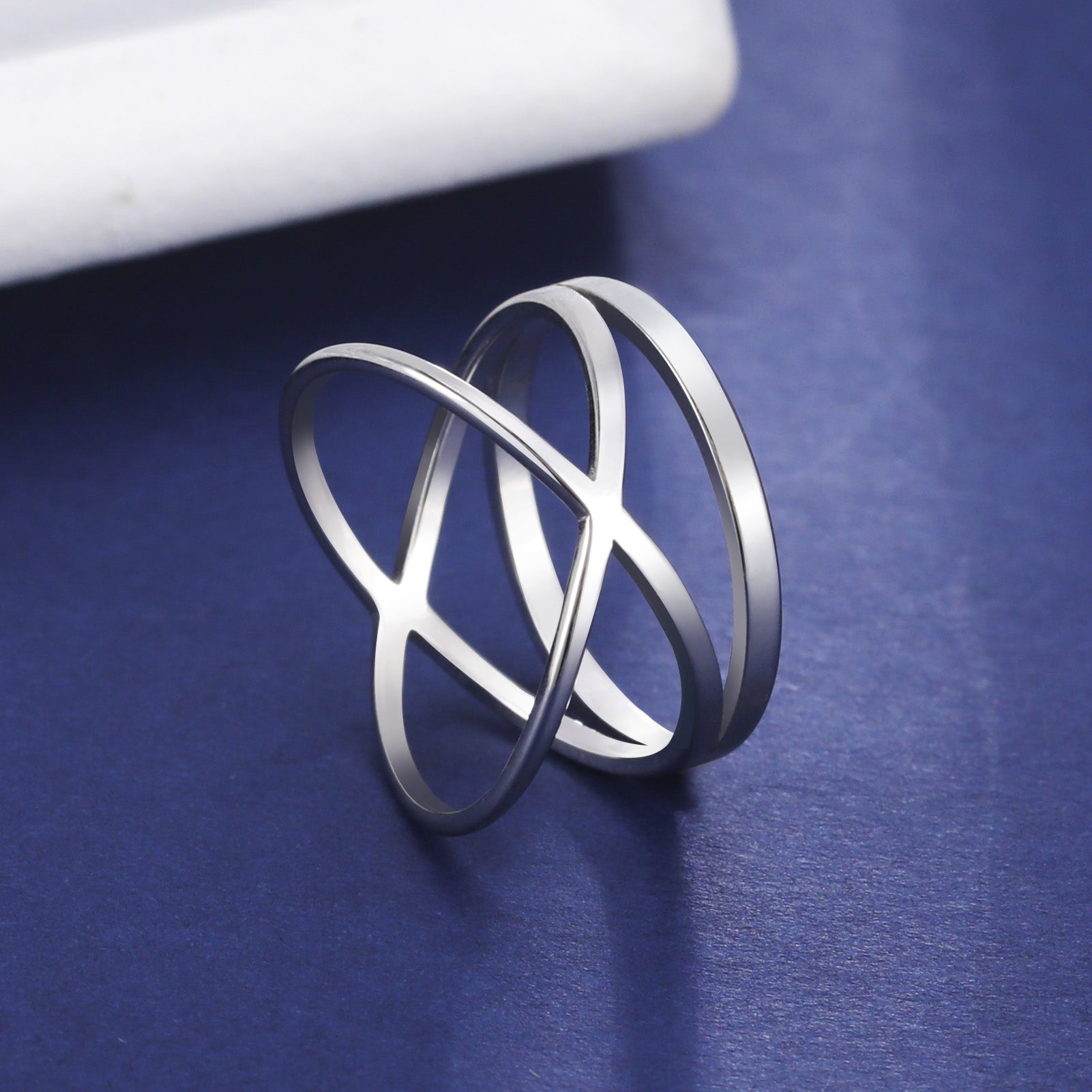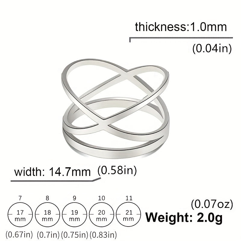 This stylish stainless steel ring features a cross hollow design with minimalist geometric lines, making it a perfect accessory for daily wear.