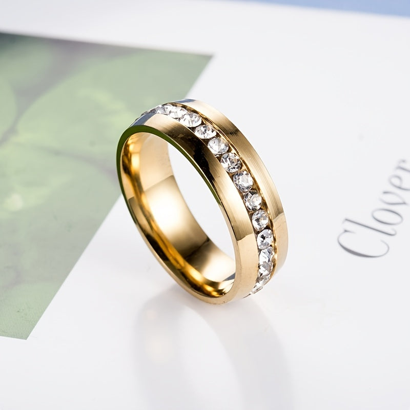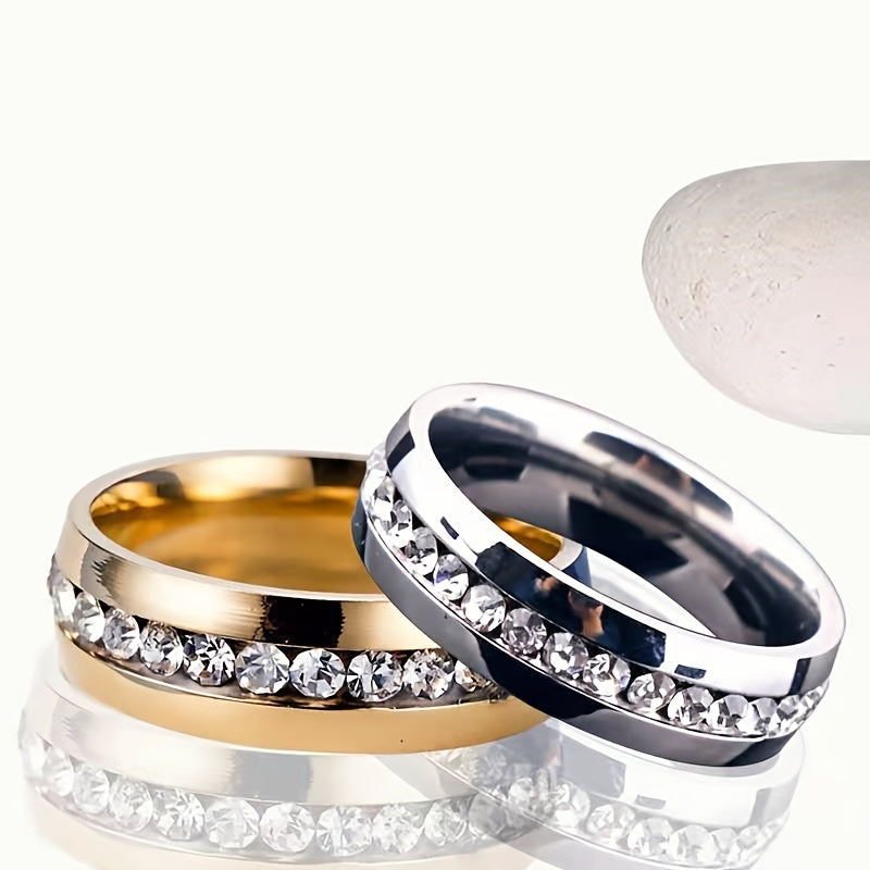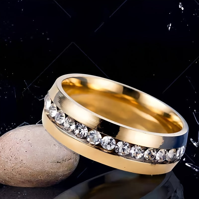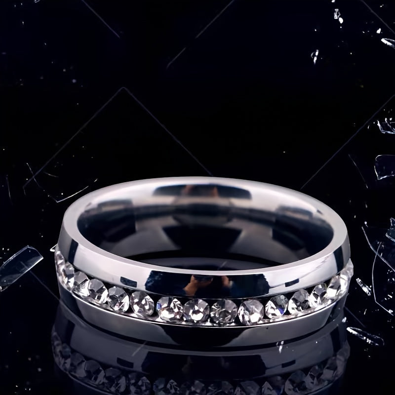 Elegant stainless steel men's ring with CZ inlay design for a sophisticated look.