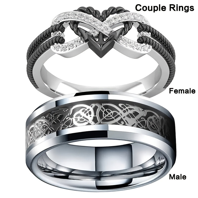 • Stainless steel heart rings set for couples