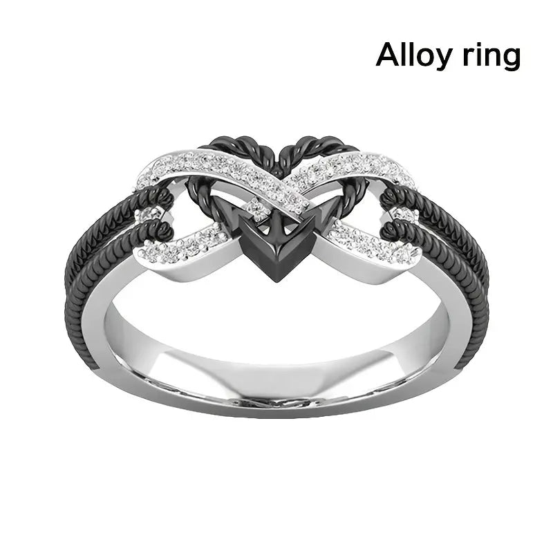 Stainless Steel Heart Rings Set, Couple Rings Bridal Wedding Engagement