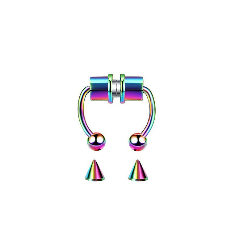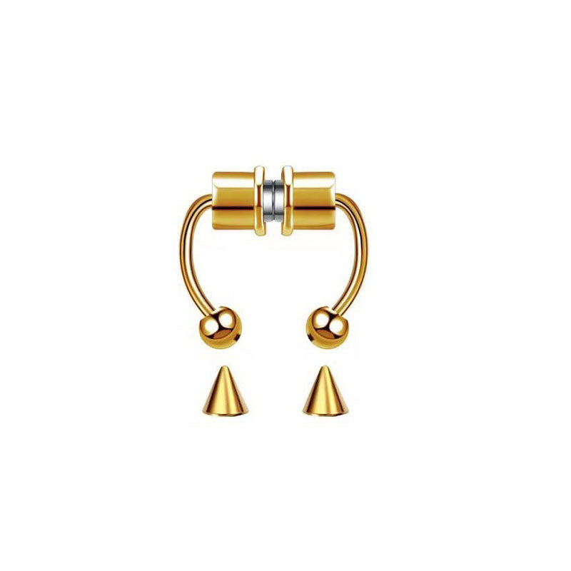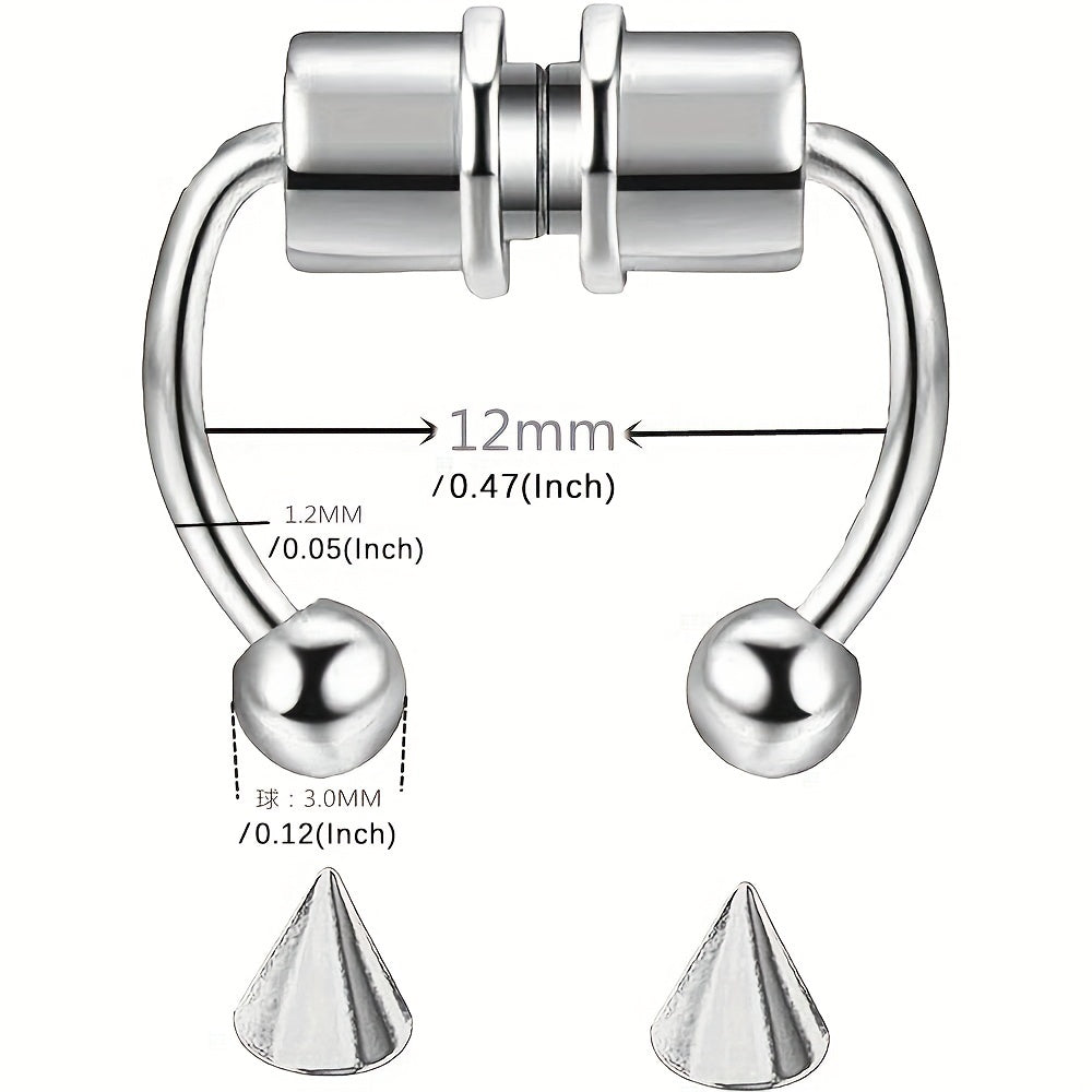 This non-piercing body jewelry features a stainless steel magnetic faux nose ring, perfect for those who want a stylish look without the commitment of a real piercing.