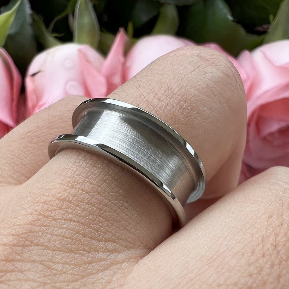 This stainless steel ring features a blank core design with a polished finish for a sleek look and comfortable fit.