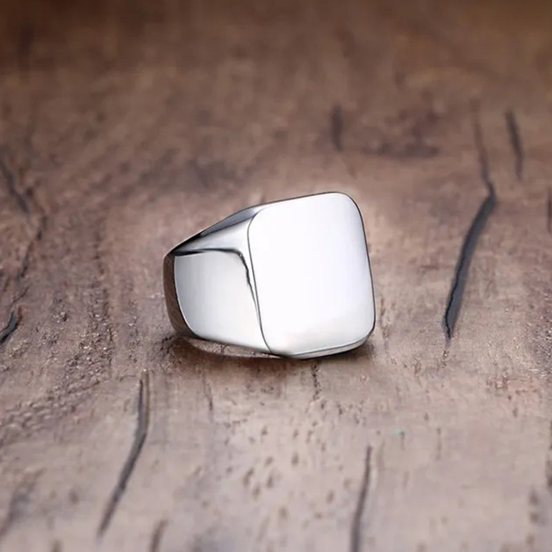 Polished silvery vintage ring suitable for both men and women. Biker style thumb ring made of solid stainless steel.