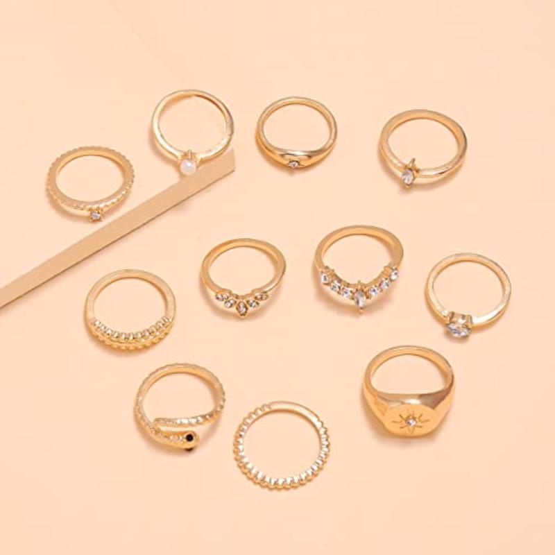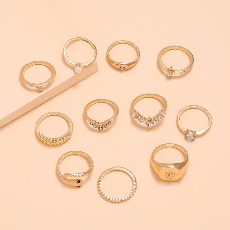 Elevate your style with this set of 11 stylish metal boho midi finger rings. Perfect for adding a touch of bohemian flair to your look.